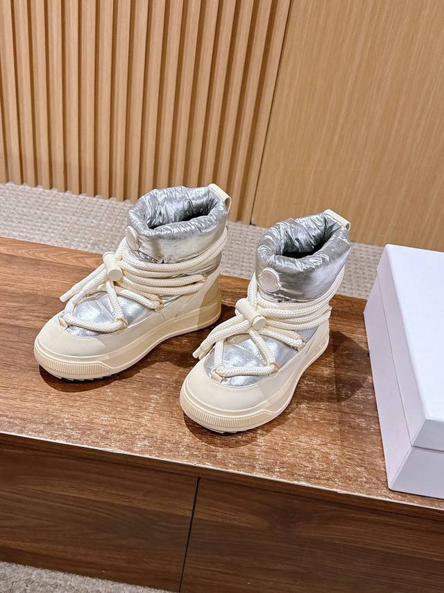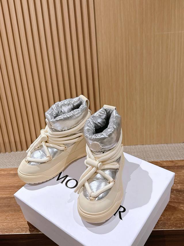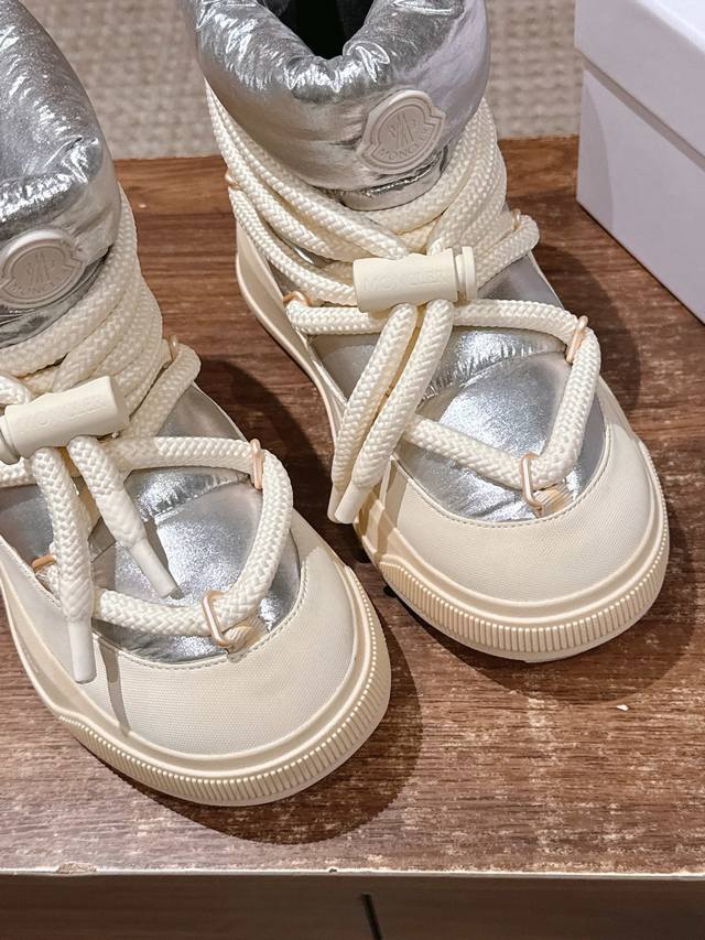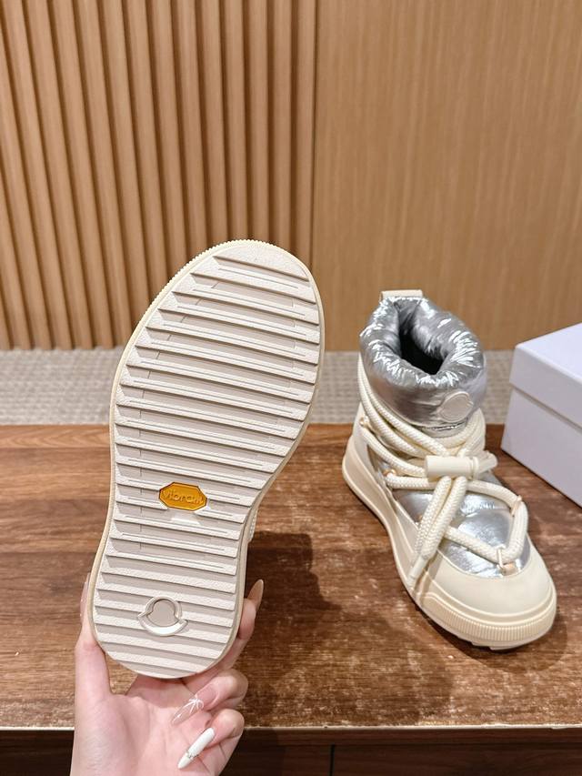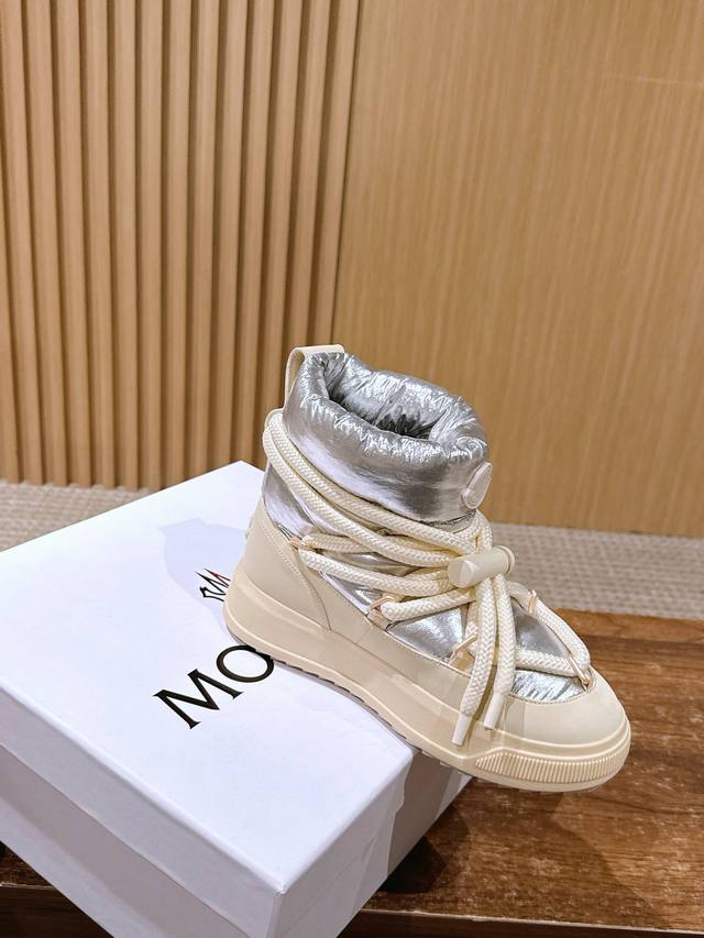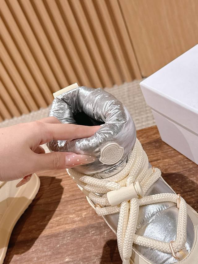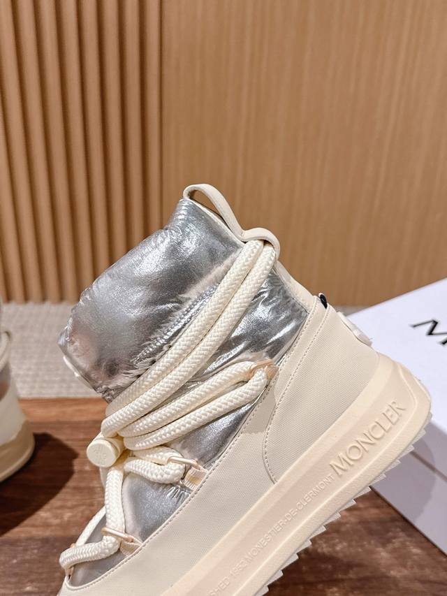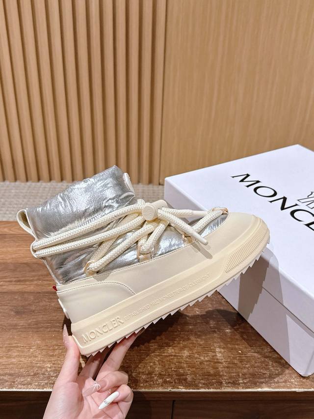 Moncler New High-Top Down Casual Shoes DDD This high-top casual shoe features a stylish and layered design. The pleated design on the upper and large laces add a trendy touch while incorporating the brand's outdoor style, combining fashion and functionality. DDD It uses a combination of down-like filling and leather, resulting in a unique texture and exquisite craftsmanship. The combination of different materials enhances the shoe's design and improves warmth and durability. DDD Upper: Waterproof coated ski fabric DDD Lining: Cashmere lining DDD Outsole: TPU outsole DDD Size: 35-41 Sizes 40 and 41 are custom sizes and cannot be returned or exchanged DDD
