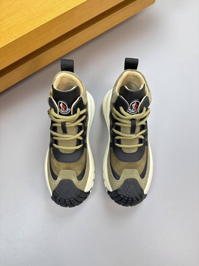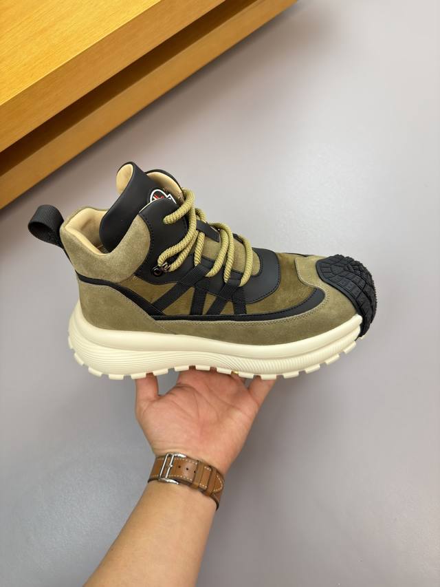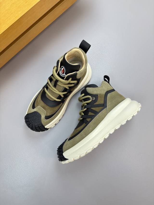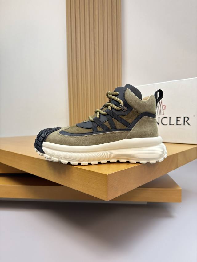 Moncler - High-end quality original single high-top casual sports shoes - Upper: Imported Nappa calfskin, suede calfskin, high-gloss suede calfskin; tongue with stitched brand logo module; heel webbing - Lining: Water-dyed cowhide - Outsole: Ultra-light TPU foam rubber; two-tone molded outsole - Super high quality control and exquisite workmanship: highlighting high-end luxury - Size: 39-44, 38, 45, custom orders available Mc0186