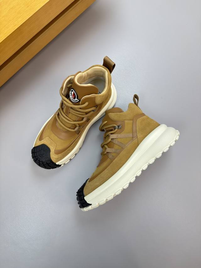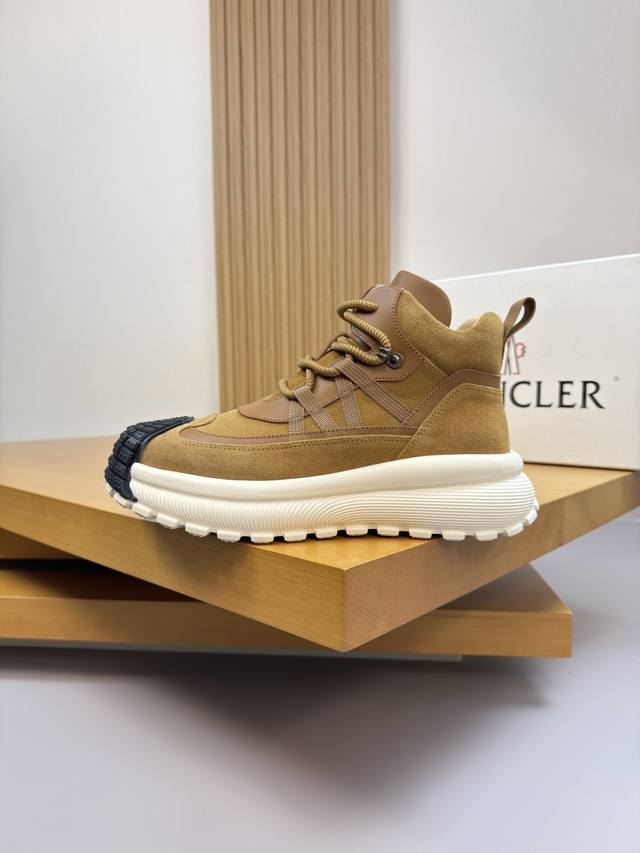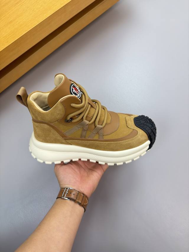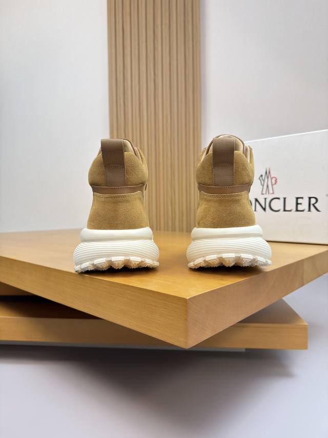 Moncler - High-end quality original single high-top casual sports shoes - Upper: Imported Nappa calfskin, suede calfskin, high-gloss suede calfskin; tongue with stitched brand logo module; heel webbing - Lining: Water-dyed cowhide - Outsole: Ultra-light TPU foam rubber; two-tone molded outsole - Super high quality control and exquisite workmanship: highlighting high-end luxury - Size: 39-44, 38, 45, custom orders available Mc0186