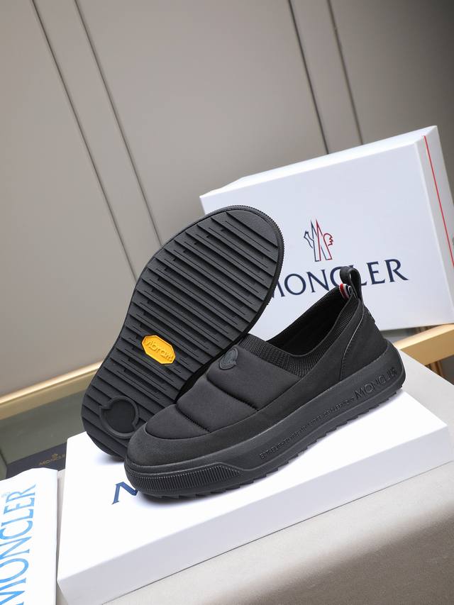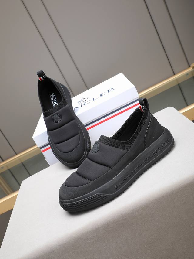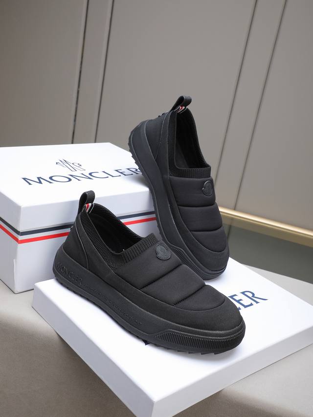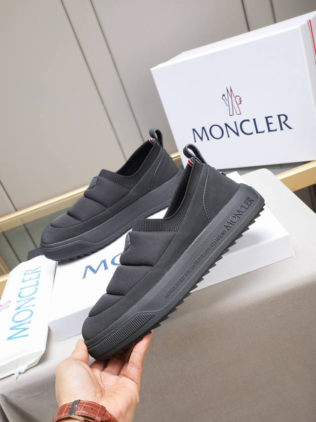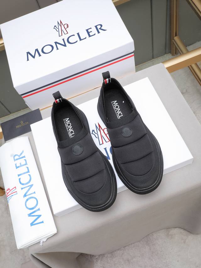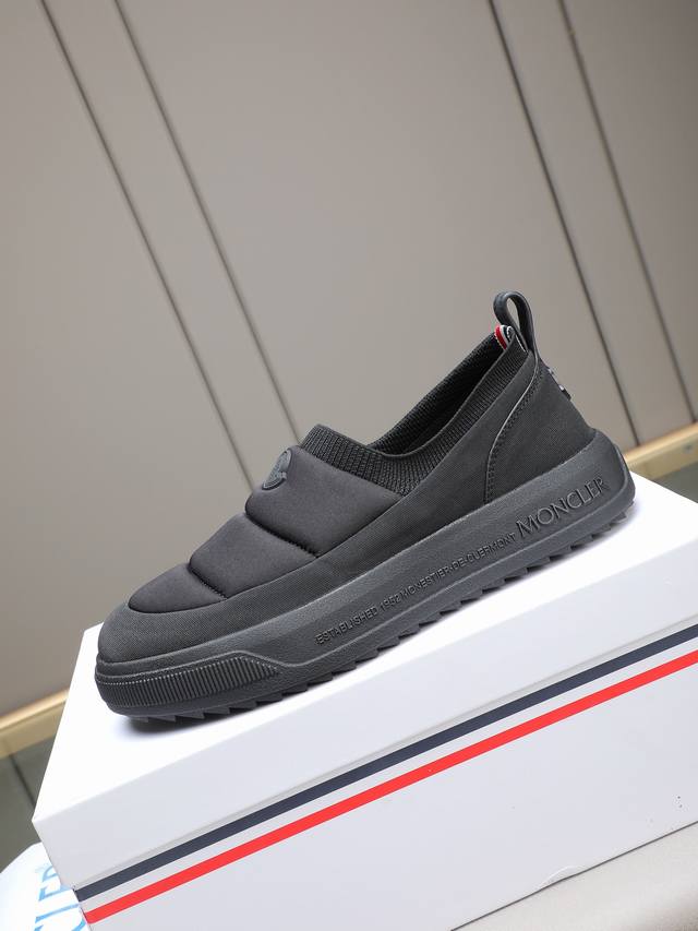 Moncler - High-quality original single-piece casual sports shoes - Upper: Grain-textured calfskin, branded canvas fabric with stitching, elastic flyknit fabric at the shoe opening, branded plastic logo stitched on the tongue and heel - Lining: Water-dyed cowhide - Outsole: Ultra-lightweight Tpr rubber; two-tone molded outsole - Super high quality control and exquisite workmanship: highlighting high-end luxury - Size: 39-44, 38, 45, custom sizes available