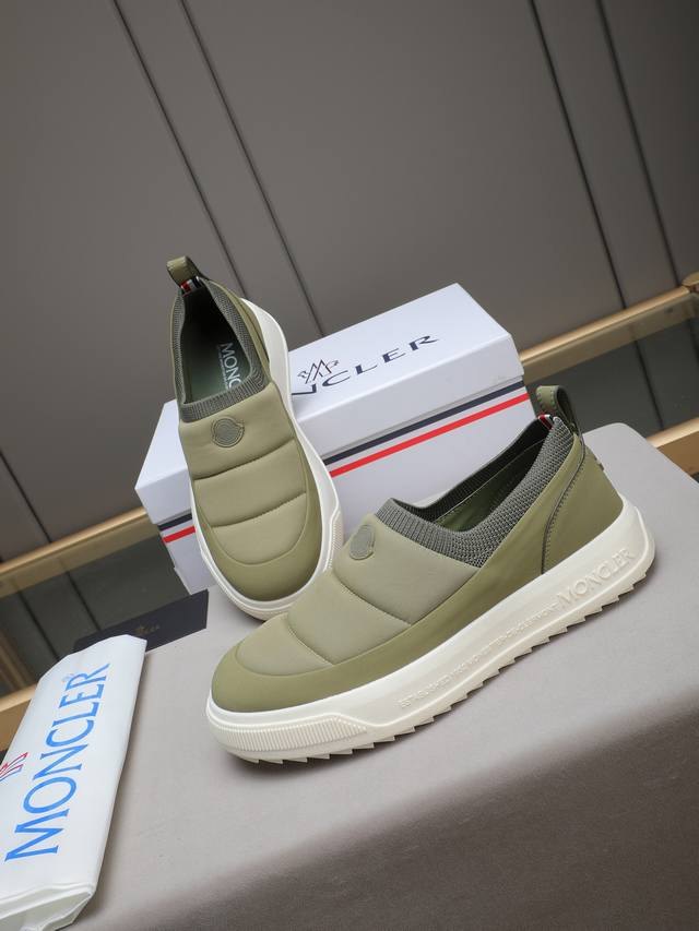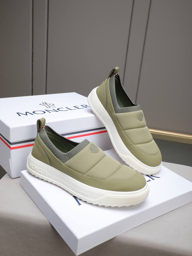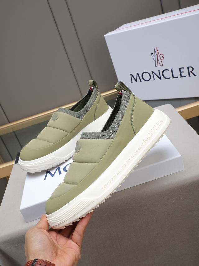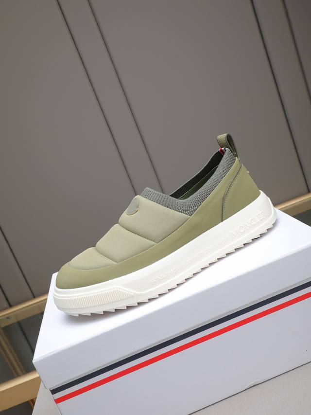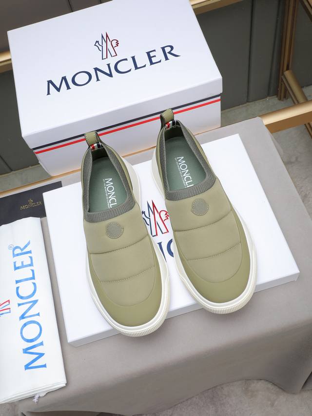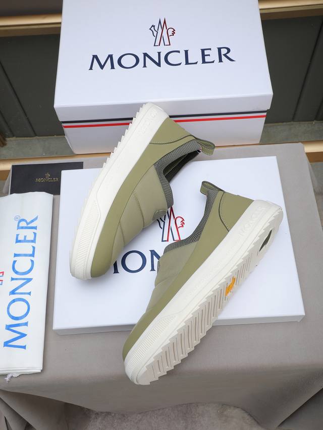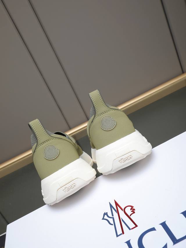 Moncler - High-quality original single-piece casual sports shoes - Upper: Grain-textured calfskin, branded canvas fabric with stitching, elastic flyknit fabric at the shoe opening, branded plastic logo stitched on the tongue and heel - Lining: Water-dyed cowhide - Outsole: Ultra-lightweight Tpr rubber; two-tone molded outsole - Super high quality control and exquisite workmanship: highlighting high-end luxury - Size: 39-44, 38, 45, custom sizes available