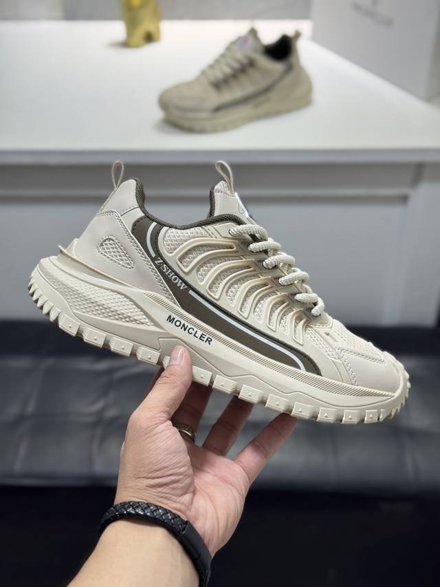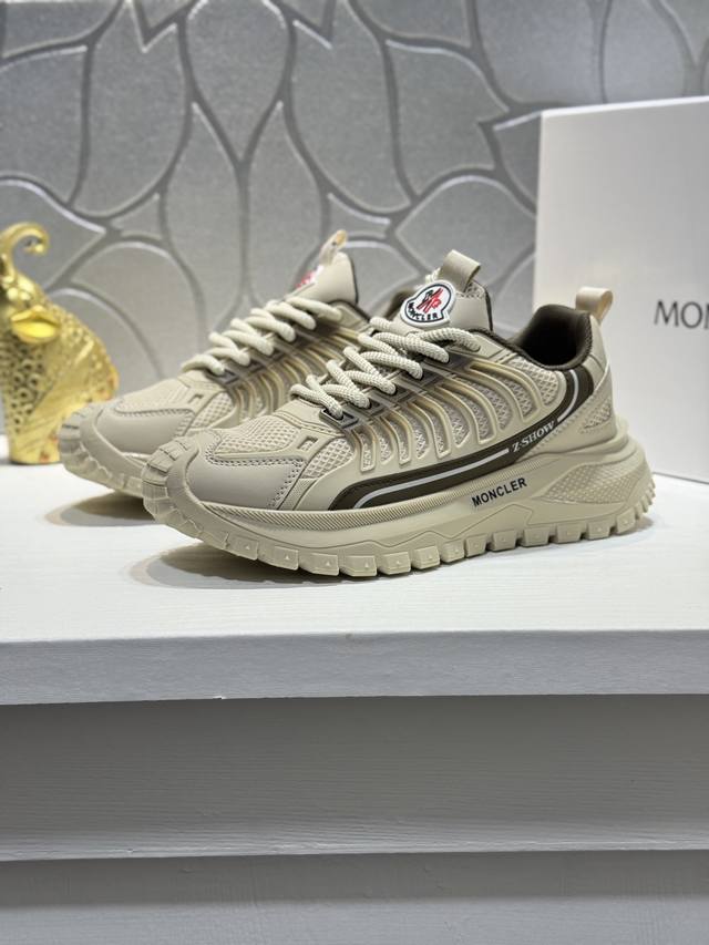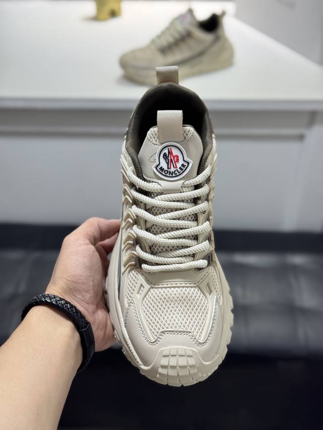 Moncler Men's Casual Sports Shoes, featuring comfortable and slip-resistant performance, a cowhide and mesh upper, combining innovation, functionality, and graphic details to interpret trendy fashion. The high-elastic rubber outsole offers high elasticity and wear resistance, enhancing comfort! Sizes: 38-44, 45 (custom sizes available).