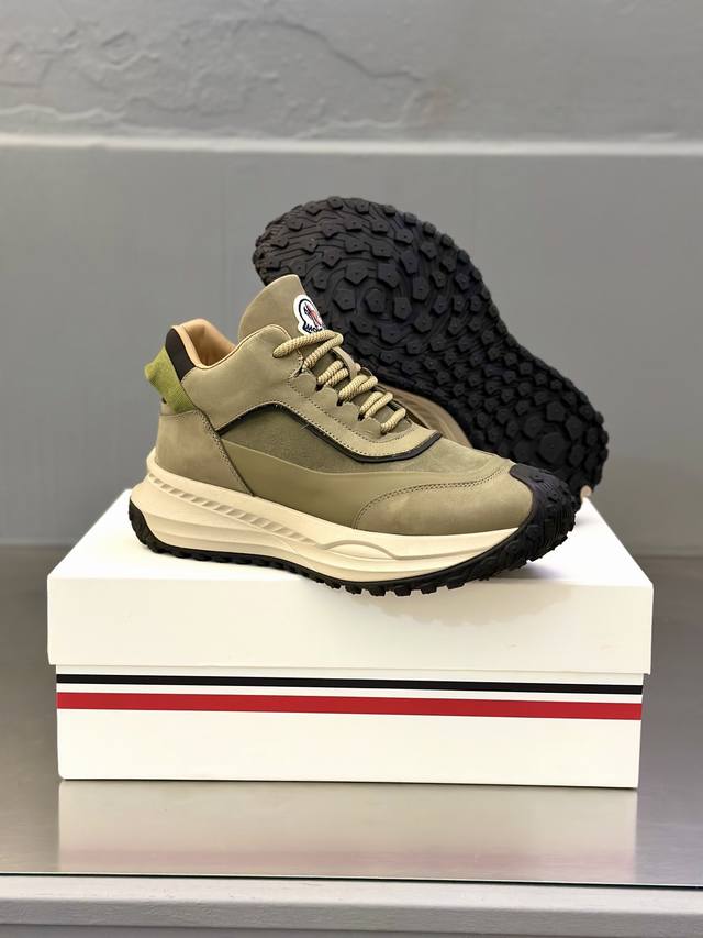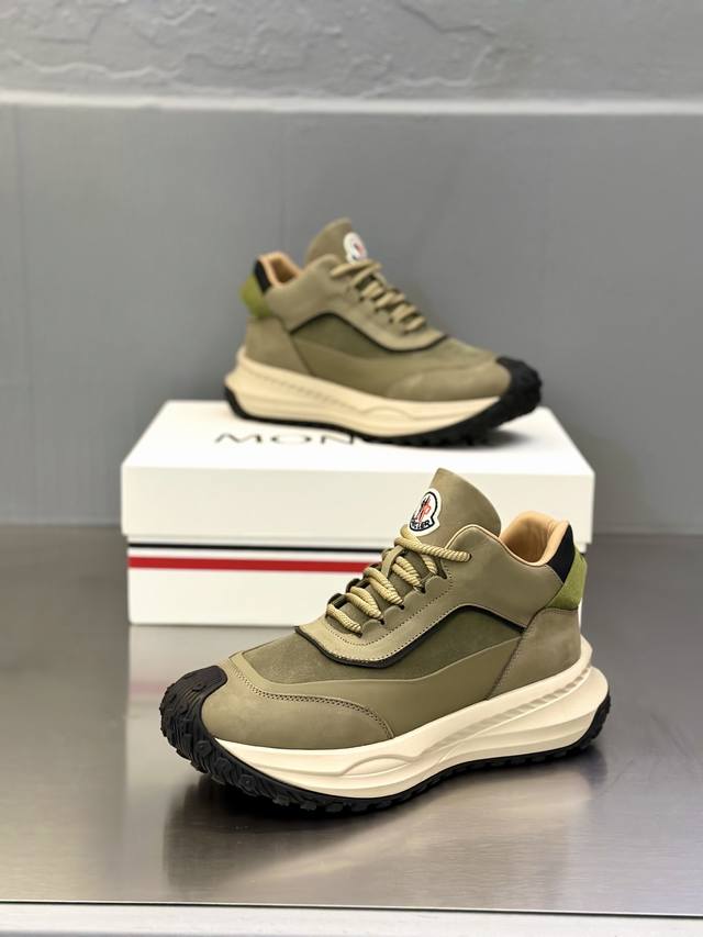 Moncler Men's Sneakers, constructed from imported breathable mesh and neoprene materials. The upper features laces and rubber inserts, and the Moncler logo is prominently displayed on the heel. The outsole is made of TPU, rubber, and high-elasticity rubber foam, offering high elasticity, durability, and enhanced comfort. Both the upper and color design make these shoes worth buying! Sizes: 39-44, 38, 45 (Custom sizes available).