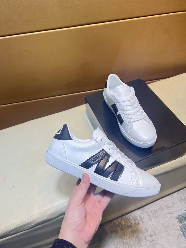 Moncler original quality. ~ Unique modern style sneakers. A must-have casual shoe for trendy men. Italian imported original brand, imported original leather, sheepskin lining to prevent fading and chafing. Sole: Original factory supply, French lazy-style design, fits snugly, original quality, super comfortable original sole. Just like the real product photos, even better in person. High-quality sneakers, men's sizes: 38-44.