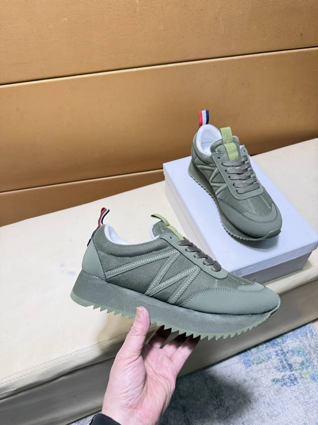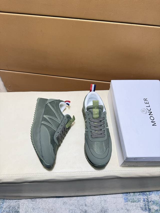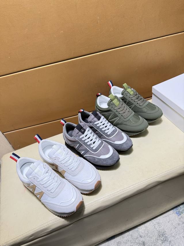 Moncler Top-Tier Men's Shoes, 2025 HK Official Store Release. Sole: Original factory-supplied sole, exclusive active sole for super comfort, original factory order, high-quality multi-color splicing design, exquisite and delicate workmanship, unique. Silk upper, cowhide lining