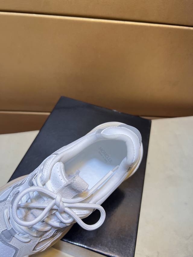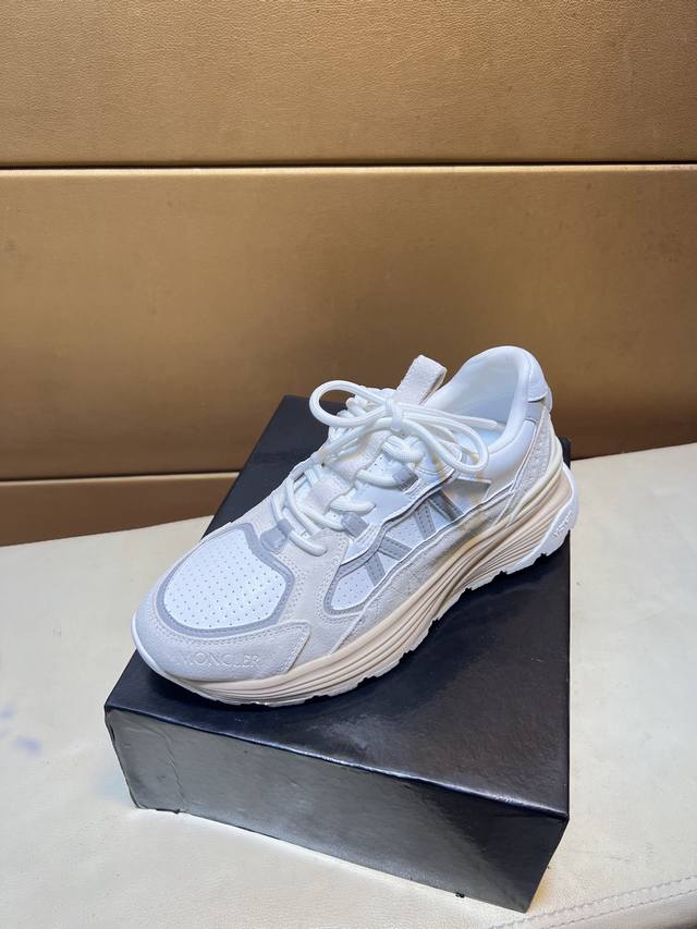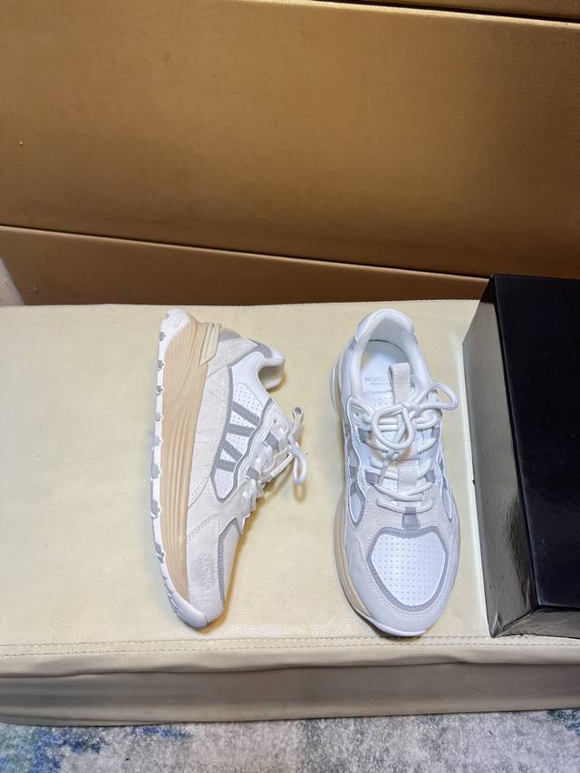 Moncler Top-Tier Men's Shoes, 2025 HK, Released Simultaneously with Official Stores. Sole: Original factory-supplied sole, exclusive active sole for super comfort, original factory order, high-quality multi-color splicing design, exquisite and delicate workmanship, one-of-a-kind. Silk upper, cowhide lining