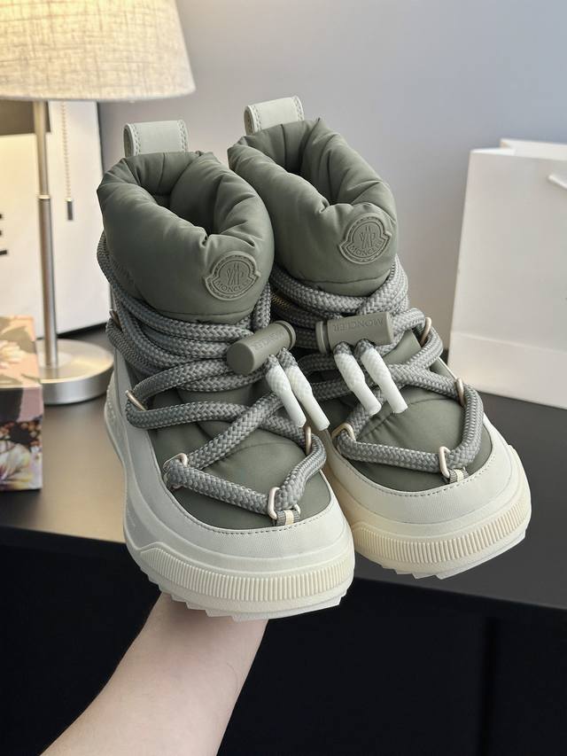 Series Snow Boots. Inspired by Moncler's classic snow boots, these boots perfectly blend bold design with practicality, redefining the urban winter lifestyle. A walking down jacket: perfect for snow adventures even at -10