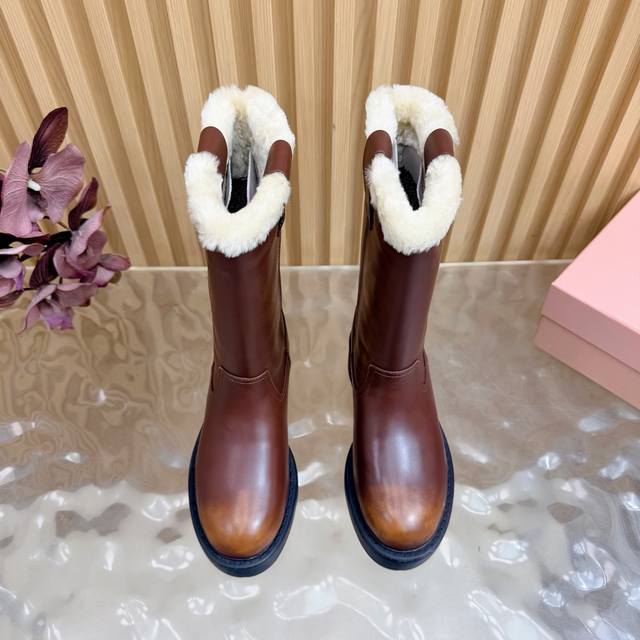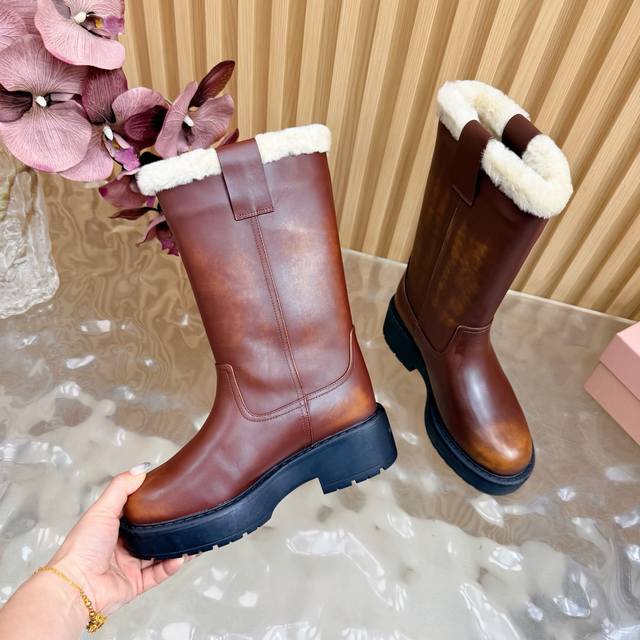 10-inch fur-lined and leather-lined 520 Ddd Miumiu 2025 Fall/Winter runway new long boots. The most worthwhile boots to buy this year, bar none! Adorned by numerous internet celebrities and stars, this Miumiu Fall/Winter limited edition is extremely difficult to find in stores. It looks stiff but is actually incredibly soft and comfortable! Superb feel! The wide boot shaft provides a relaxed fit regardless of leg size and makes legs appear straight! Full of punk style! Ddd Material: Italian imported suede leather Ddd Lining: Cow lining and fur lining Ddd Outsole: Italian one-piece molded outsole Ddd Sizes: 35-41 40.40 Made to order, no returns or exchanges Ddd