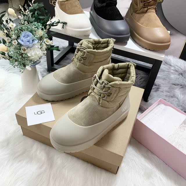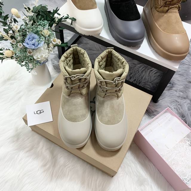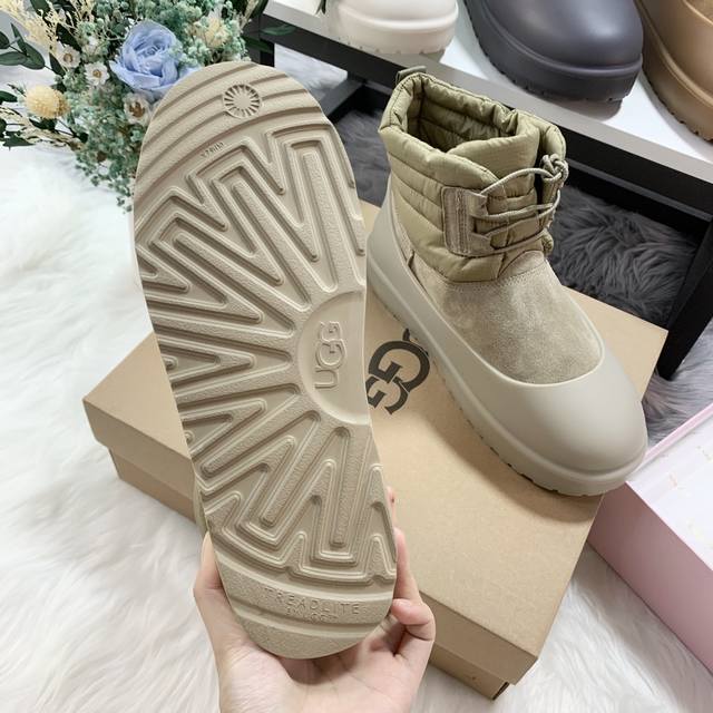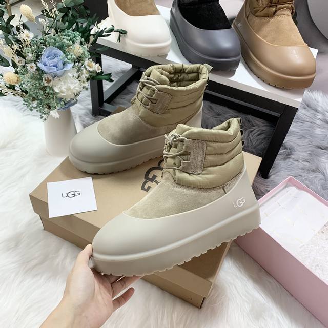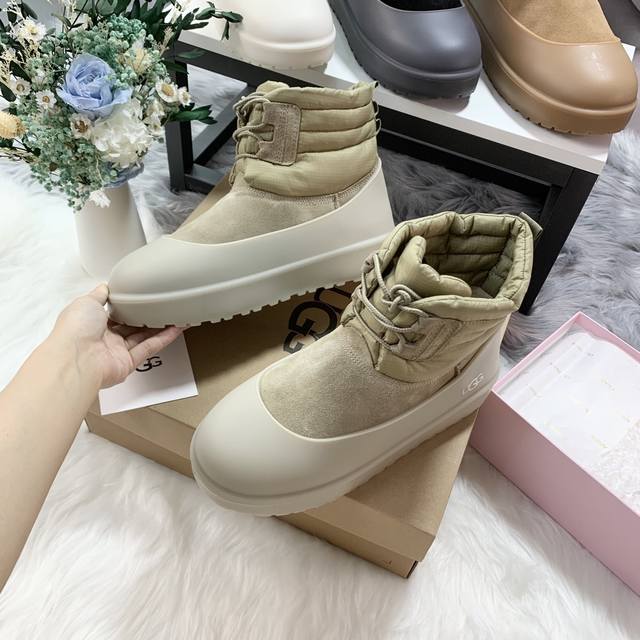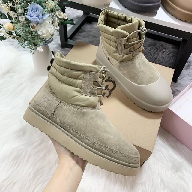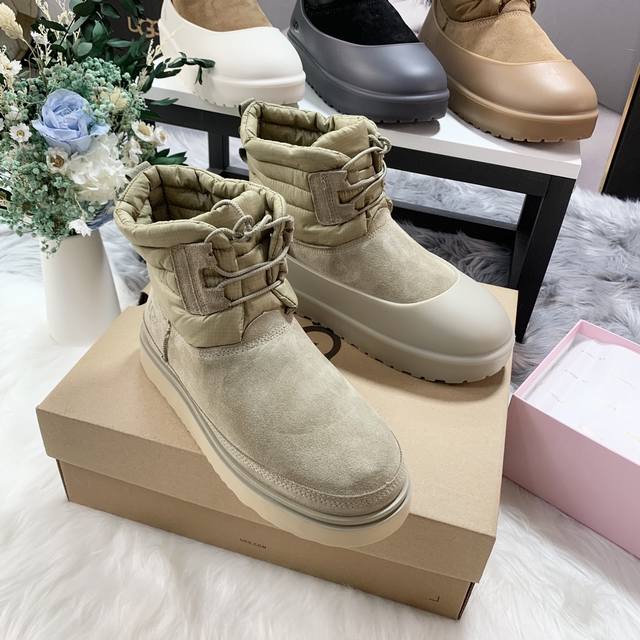 1120849 Waterproof Lace-up Down Two-Way Couple Snow Boots (Factory Price: Men's with shoe covers +10) Features a down-filled boot shaft for warmth and comfort, with a stylish design. Made of nylon with a tear-resistant nylon upper, it's incredibly trendy. Includes shoe covers for slip resistance, dirt prevention, and easy cleaning. Colors: Chestnut, Black, Antelope Brown, Beige. Sizes: Women's 35-40, Men's 39-45 .