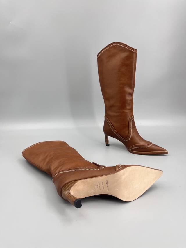 Sergio Rossi Pointed-Toe Personalized High-Heeled Straight Boots