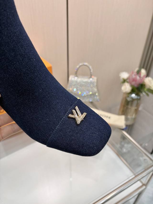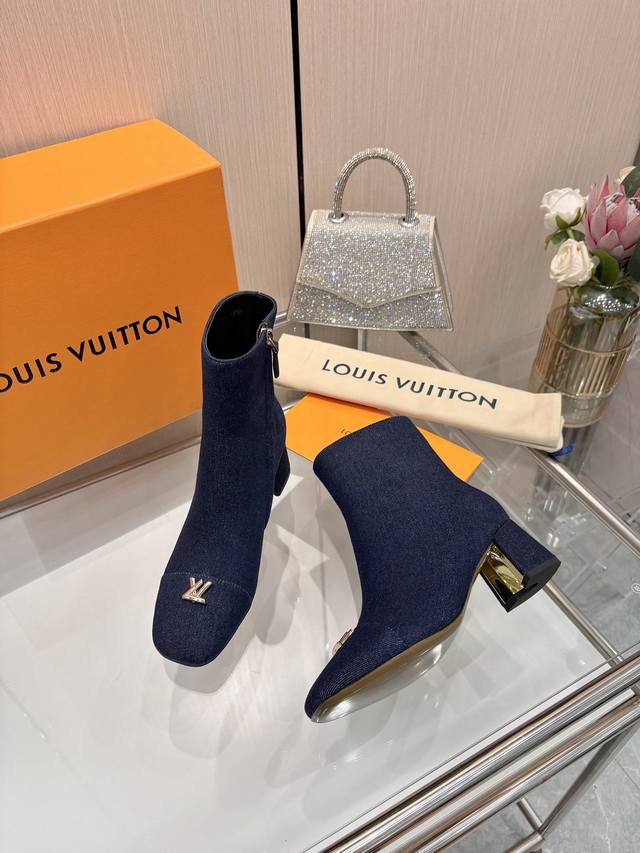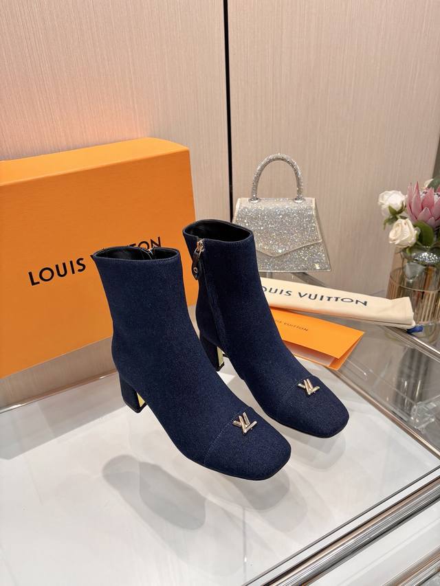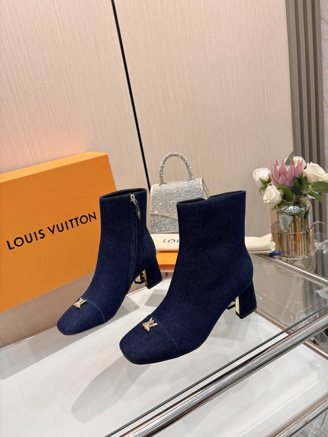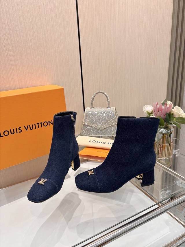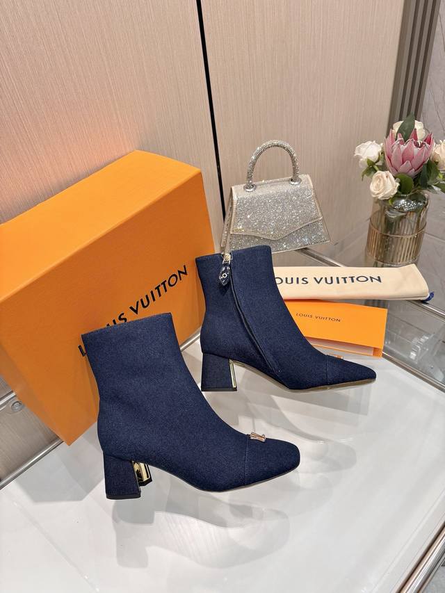 2025 Latest L Brand Autumn/Winter Runway 6-inch Ankle Boots, Official Website Series, Synchronized Updates, Factory Wholesale: Perfect Last + Small V-Buck Design, Classic Recreation, Simple and Elegant Style, Comfortable to Walk In, Suitable for All Body Types, Stylish and Looks Great on the Feet, Original Molded Last, Extreme 1:1 Shape, High-End Quality, Imported High-End Fabric Presents Exquisite Texture! Material: Imported Calfskin Lychee Pattern Monogram Denim; Lining: High-Quality Soft Sheepskin; Insole: Imported Goatskin; Custom-Made A-Grade High-Density Private Mold Outsole, Luxurious Packaging! 5.5cm Leather Heel with Electroplating Design; Sizes: 35-40, 34, 40, 41 (Custom orders are non-refundable/non-exchangeable).