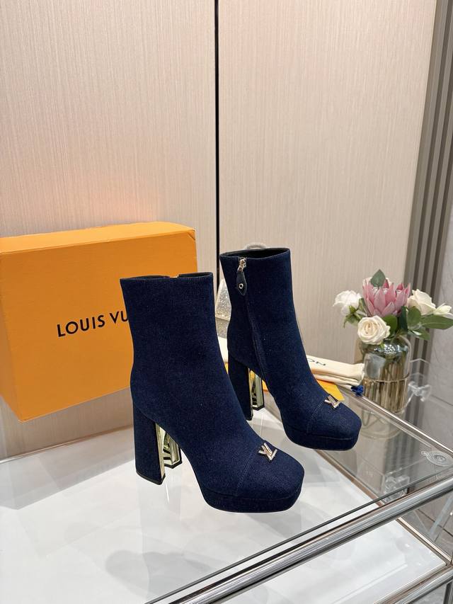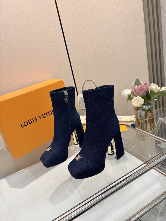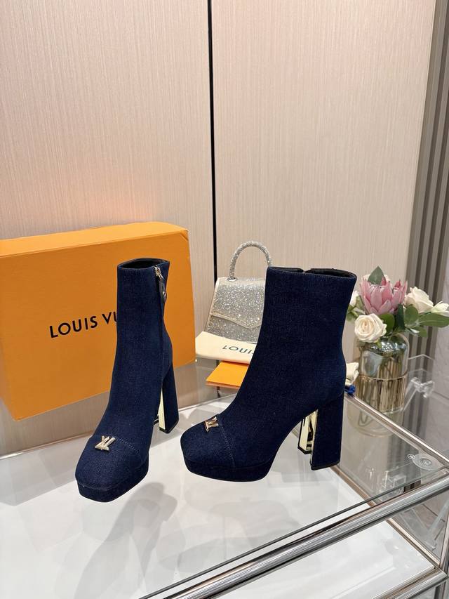 2025 Latest L Brand Autumn/Winter Runway 6-inch Platform Ankle Boots, Official Website Series, Synchronized Updates, Factory Wholesale: Perfect Last + Small V-Buck + Platform Design, Recreating Classic Style, Simple and Elegant Design, Comfortable to Walk In, Suitable for All Body Types, Looks Stylish and Beautiful on the Foot, Original Molded Last, Ultimate 1:1 Shape, High-End Quality, Imported High-End Fabric Presents Exquisite Texture! Material: Imported Calfskin Lychee Pattern Monogram Denim; Lining: High-Quality Soft Sheepskin; Insole: Imported Goatskin; Custom-Made A-Grade High-Density Private Mold Outsole, Luxurious Packaging! 11cm Leather Upper, 2cm Platform, Electroplated Leather Design; Sizes: 35-40, 34, 40, 41 (Custom orders are non-refundable/non-exchangeable).