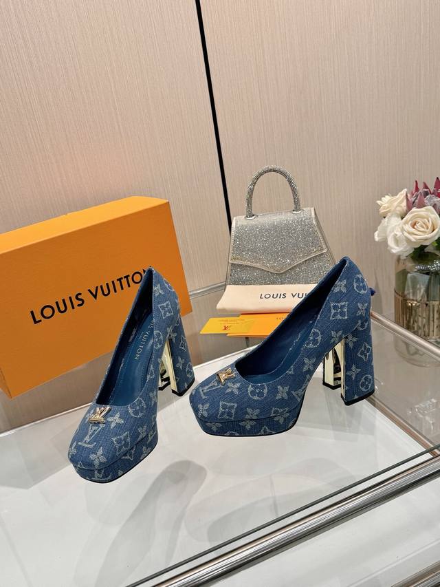 2025 Latest L Brand Spring/Autumn Runway Style Platform Shoes, Official Website Series, Synchronized Updates, Factory Wholesale: Perfect Last + Small V-Buck + Platform Design, Recreating Classic Style, Simple and Elegant Design, Comfortable to Walk In, Suitable for All Body Types, Looks Stylish and Beautiful on the Foot, Original Molded Last, Extreme 1:1 Shape, High-End Quality, Imported High-End Fabric Presents Exquisite Texture! Material: Imported Calfskin Lychee Pattern Monogram Denim; Lining: High-Quality Soft Sheepskin; Insole: Imported Goatskin; Custom-Made A-Grade High-Density Private Mold Outsole, Luxurious Packaging! 11cm Leather Upper, 2cm Platform, Electroplated Leather Design; Sizes: 35-40, 34, 40, 41 (Custom orders are non-refundable/non-exchangeable).