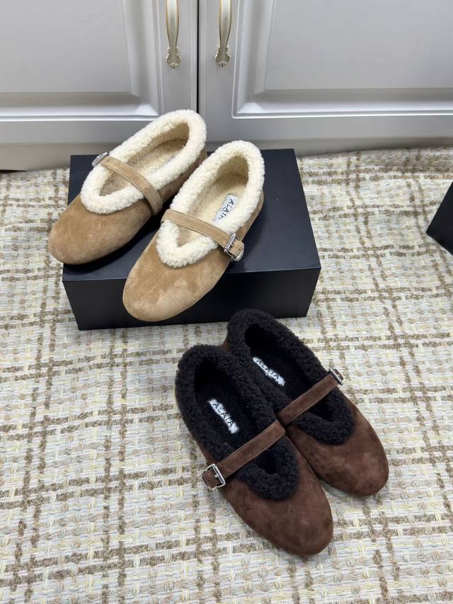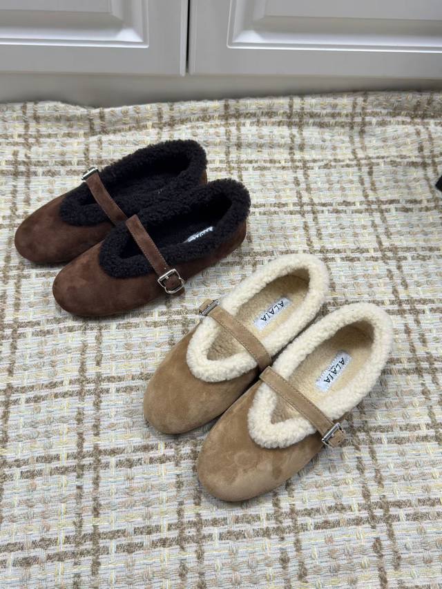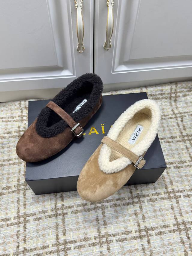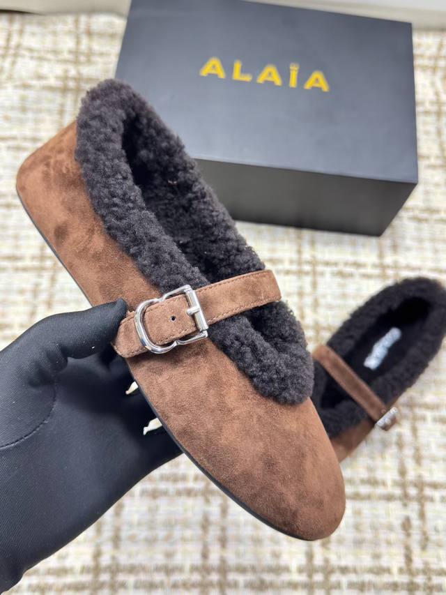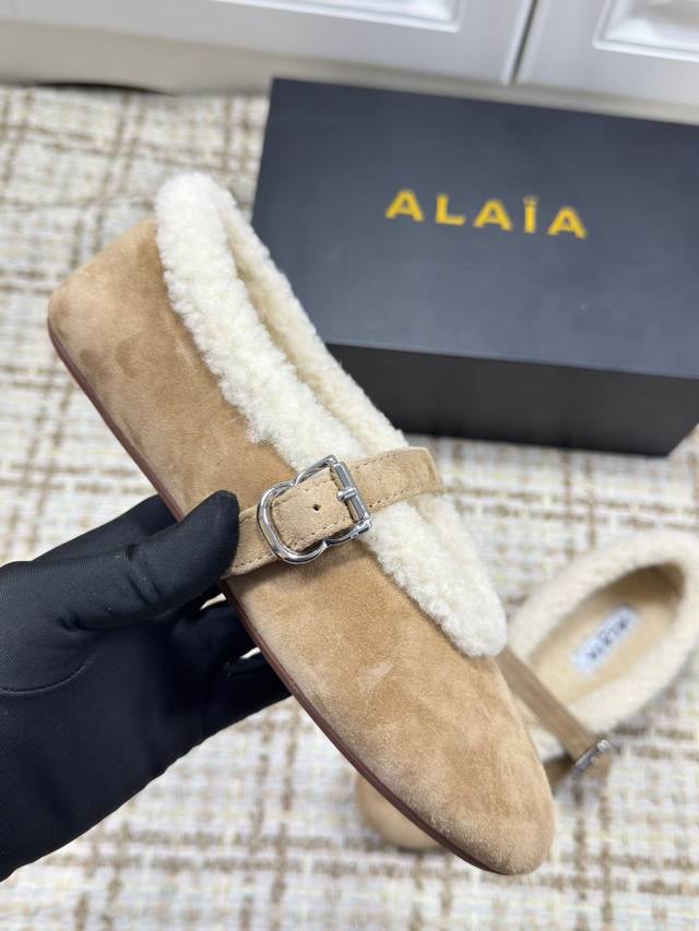2025 New Alaia French Ballet Flats, Furry Shoes DDD Alaia's hottest flat shoes, beautiful and comfortable DDD This year's super popular Alaia Mary Jane furry shoes! Every celebrity owns a pair. Super comfortable and easy-to-wear flat shoes! DDD Originally ballet flats with a soft and romantic feel DDD Upper: Shearling DDD Lining: Furry DDD Outsole: Original molded rubber outsole DDD Sizes: 35-39 40, 41 custom-made, factory price DDD