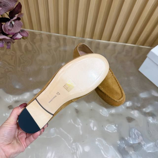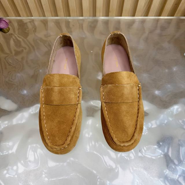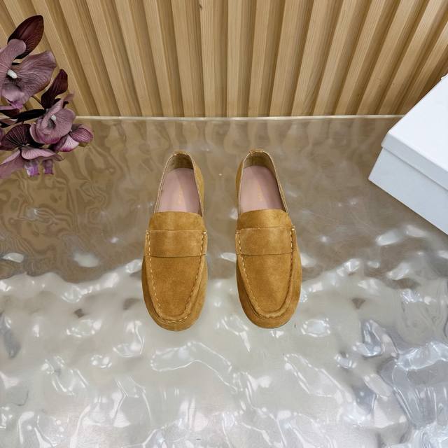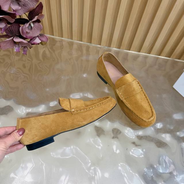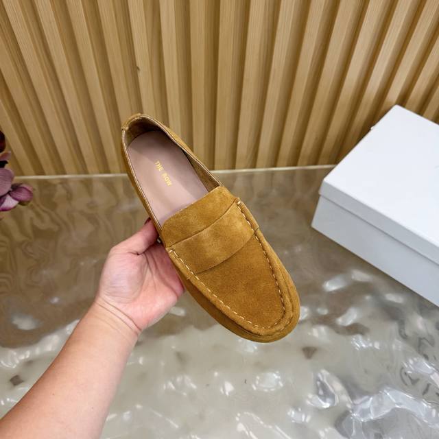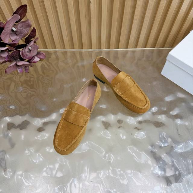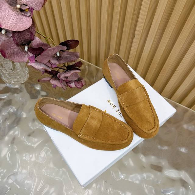 2025 New The Row Loafers~ Retro yet stylish loafers, a clever combination of simplicity and luxury, retaining classic charm while maintaining a dignified and composed look. From the smooth lines of the shoe shape to the delicate craftsmanship of the outsole, every detail showcases the brand's dedication to quality. Whether paired with simple trousers or an elegant skirt, they add a touch of understated beauty and a noble air. The upper is made of top-grade soft and delicate cashmere. The lining is made of soft sheepskin. The insole is also made of sheepskin wrapped with high-elastic latex, with stitching around the edges highlighting the aesthetics while enhancing wearing comfort. Genuine leather outsole. Sizes: 35, 42, 40, 41, 42 (custom sizes available).