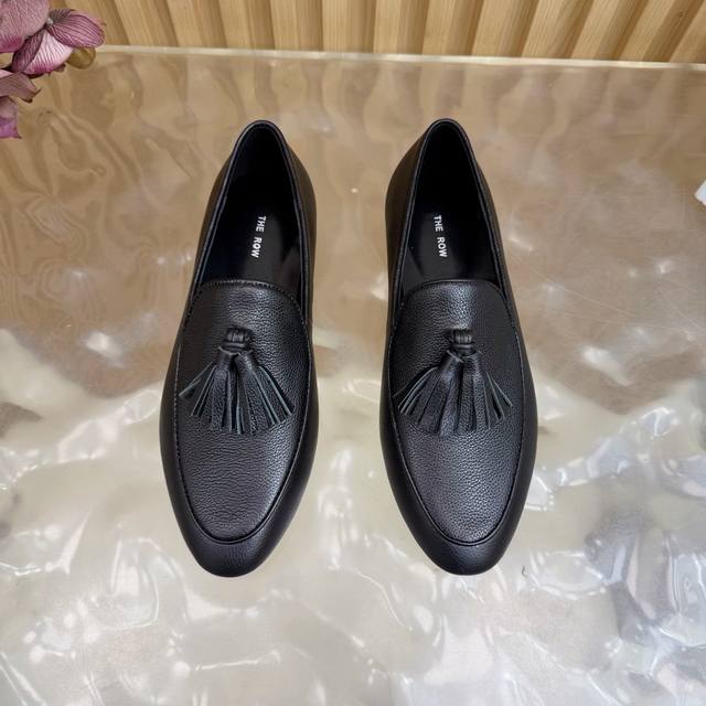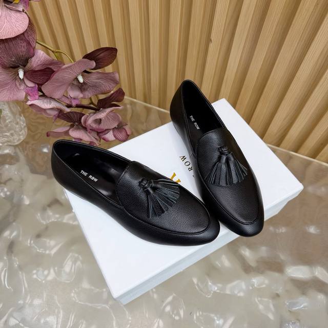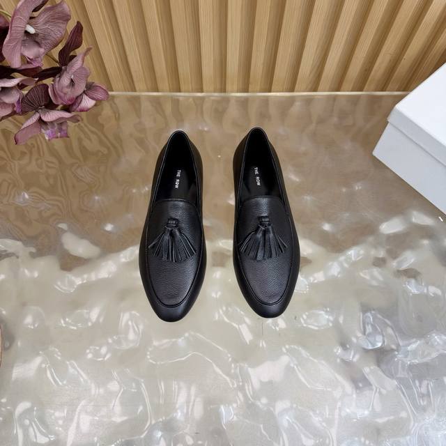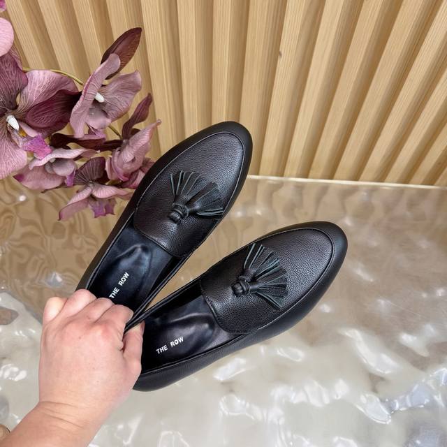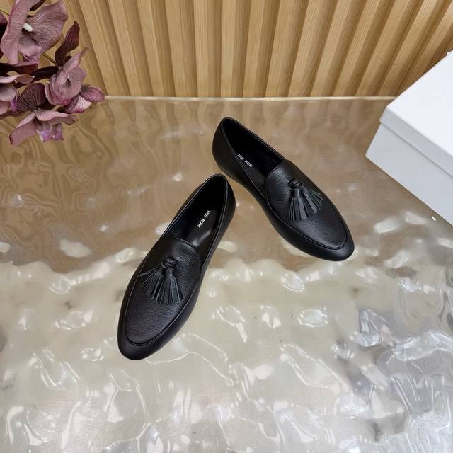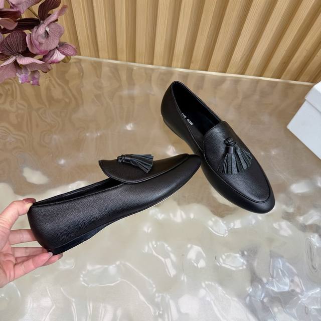 2025 New The Row ~ Retro and Stylish Tassel Loafers. A clever combination of simplicity and luxury, these shoes retain classic charm while maintaining a dignified and composed look. From the smooth lines of the shoe shape to the delicate craftsmanship of the outsole, every detail showcases the brand's dedication to quality. Whether paired with simple trousers or an elegant skirt, they add a touch of understated beauty and a touch of nobility. The upper is made of top-grade soft and delicate cashmere. The lining is made of soft sheepskin. The insole is also made of sheepskin-wrapped high-elastic latex, with stitching around the edges highlighting the aesthetics while enhancing comfort. Genuine leather outsole. Sizes: 35, 43, 40, 41, 42, 43 (custom sizes available ) .