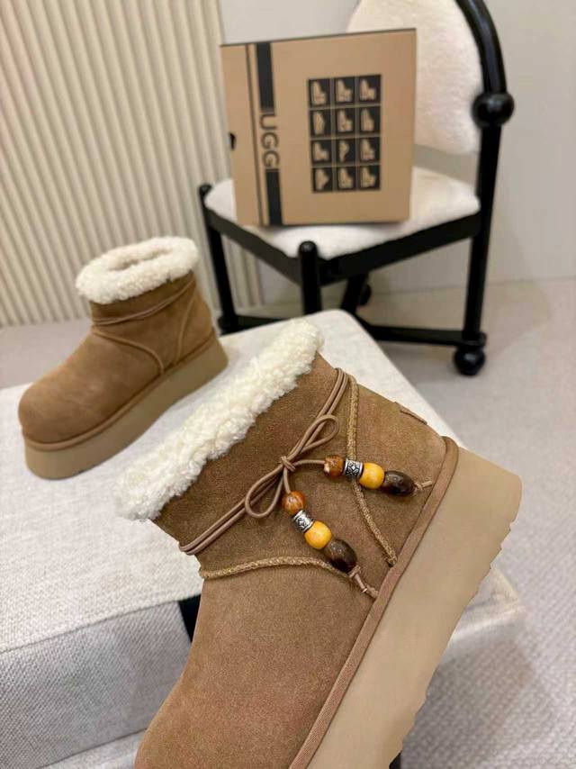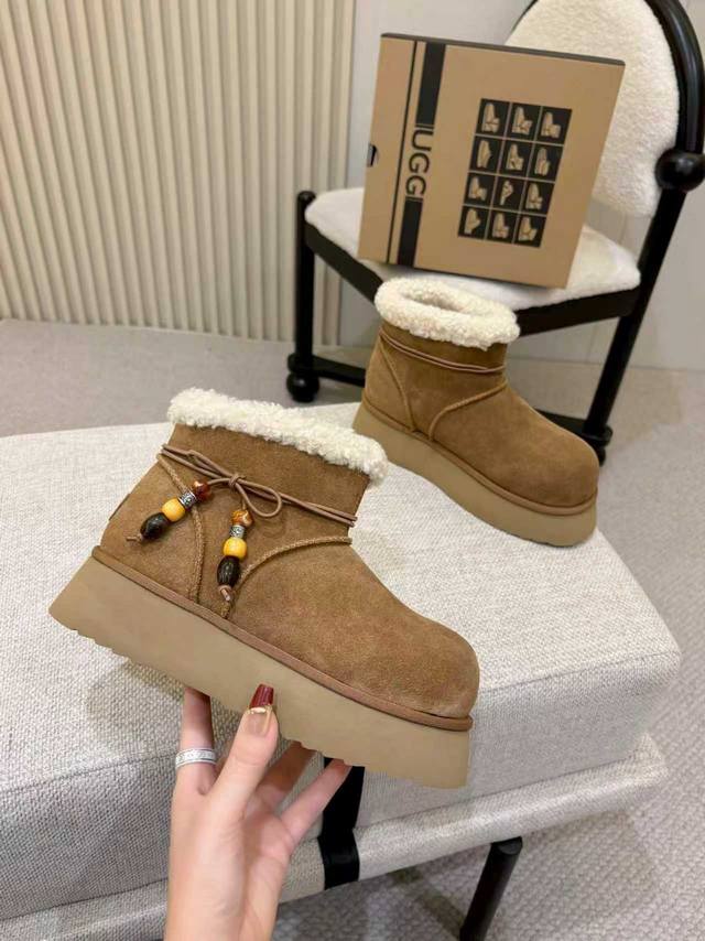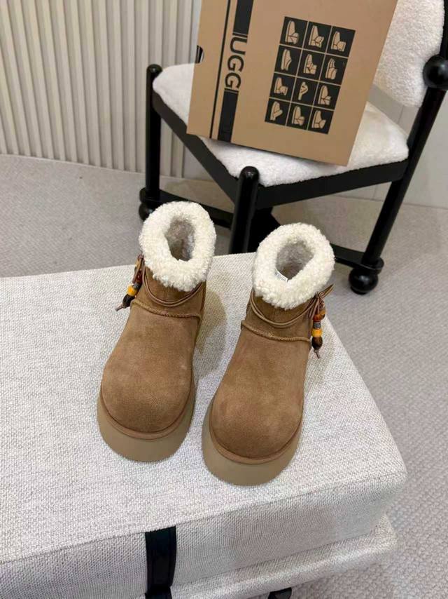 2025 New Ugg Snow Boots - Two Ways to Wear DDD Factory direct, thick-soled, chunky boots, made of cowhide leather DDD, with a wool lining, warm, comfortable, and highly elastic thick sole, suitable for all kinds of weather, comfortable to walk in, stylish pendant to show your unique personality DDD Color: Chestnut Walnut DDD Sizes: 35-40 DDD