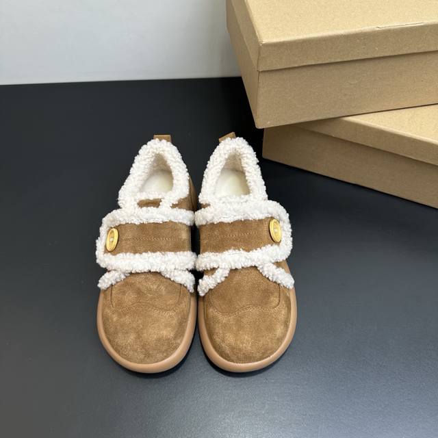 2025 New Ugg Winter Velcro Snow Shoes, Furry Shoes, 100% Stylish and Looks Great, Boosts Your Aura! Lace-up Casual Shoes with Embossed Brand Logo on the Heel. Upper: High-Quality Cow Suede. Lining: Teddy Wool Lining. Outsole: Rubber Non-Slip Outsole. Sizes: 35, 39, 40 (Fixed).