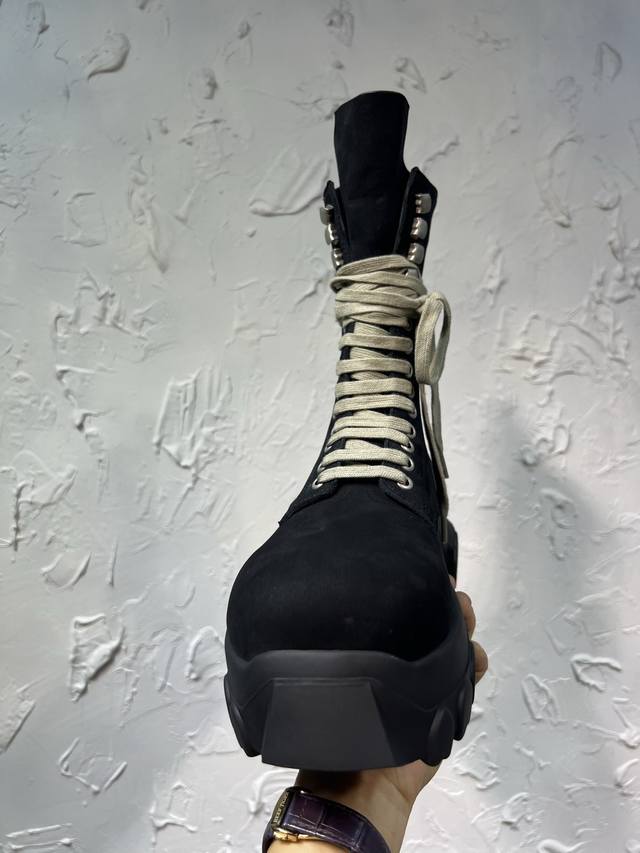 2025 Newest Rick Owens Black Porterville Army Mege Tracror Lace-up Zipper Mid-Le