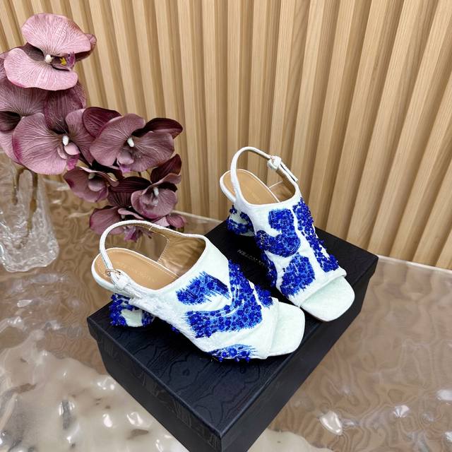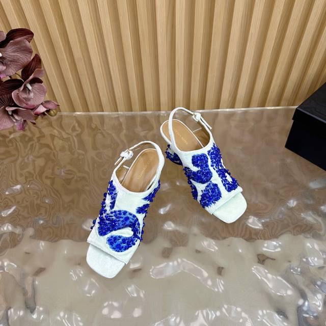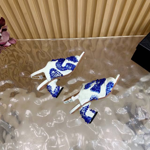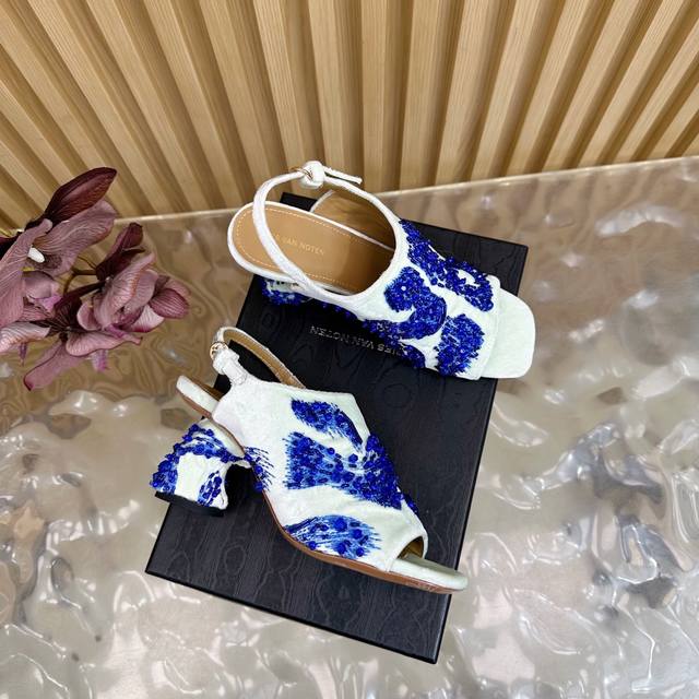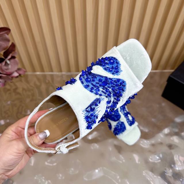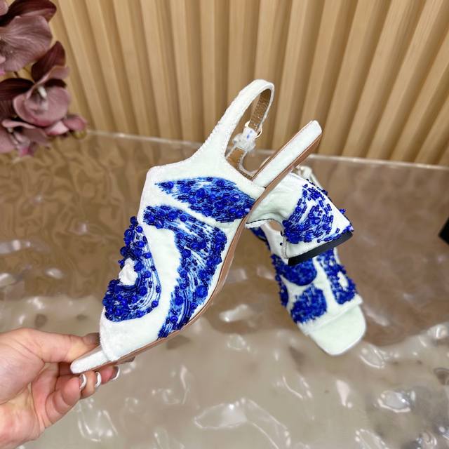 2025 Spring/Summer New Arrivals Available Now at Boutiques #Dries Von Noten #Dvn #GalaxyStarrySky Wearing these sandals on your feet, no need for fancy words, they're hard not to love. The heavy-duty beading craftsmanship paired with a crystal transparent wedge heel creates a bold and avant-garde style. Material: Heavy-duty velvet beading Lining: Sheepskin Heel Height: Approx. 5.5cm Outsole: Original genuine leather injection-molded outsole Sizes: 35, 43, 40, 41, 42, 43 (Custom sizes available)