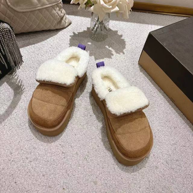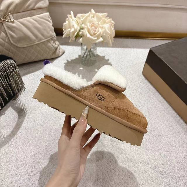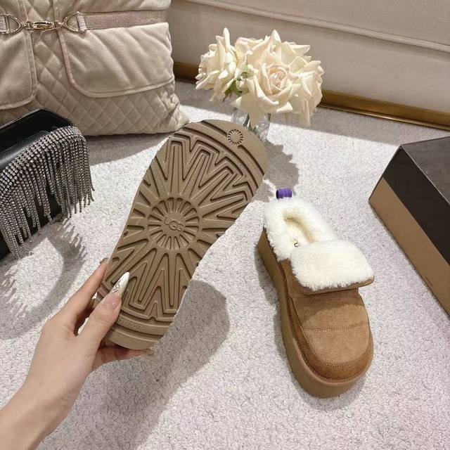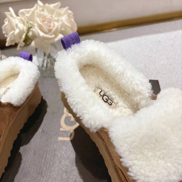 2025 Ugg Michelin Caterpillar Slippers, featuring a frayed collar design, stylish and versatile. Made of high-gloss cow suede and imported European lamb's wool, with an original molded outsole. (