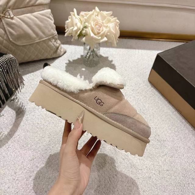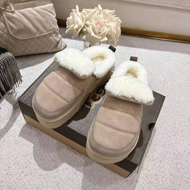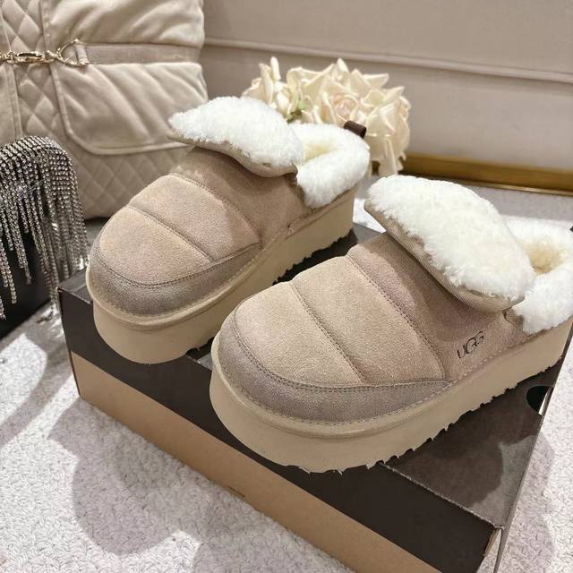 2025 Ugg Michelin Caterpillar Slippers, featuring a frayed collar design, stylish and versatile. Made of high-gloss cow suede and imported European lamb's wool, with an original molded outsole. (