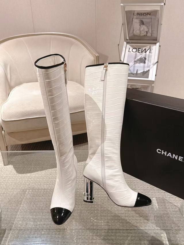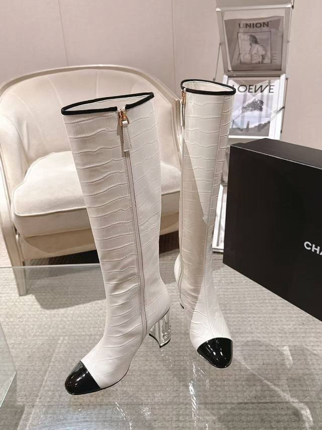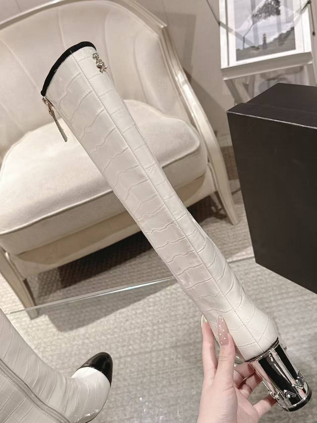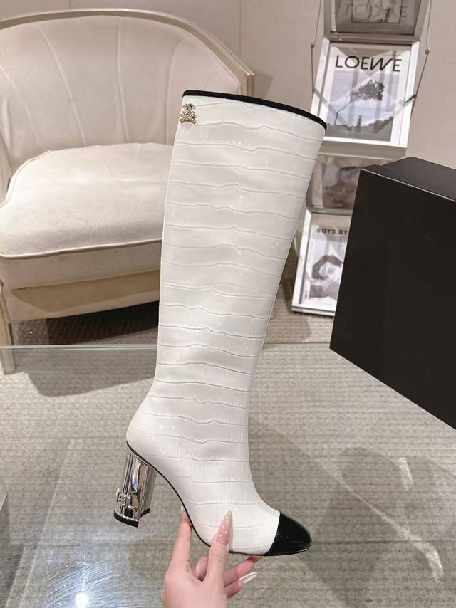 20252012-5 DDD Exquisite electroplated letter heel boot opening with rhinestone tag, 15cm high boot DDD upper; imported stone-textured calfskin lining DDD; silk sheepskin insole DDD; silk sheepskin outsole DDD; Italian genuine leather DDD heel height; 8.5cm DDD Sizes; 35-390, custom sizes 34-40-41-42 DDD Original boutique full set luxury packaging, wholesale available.
