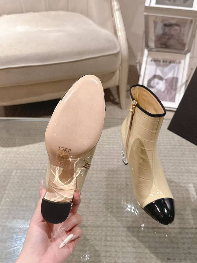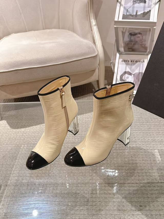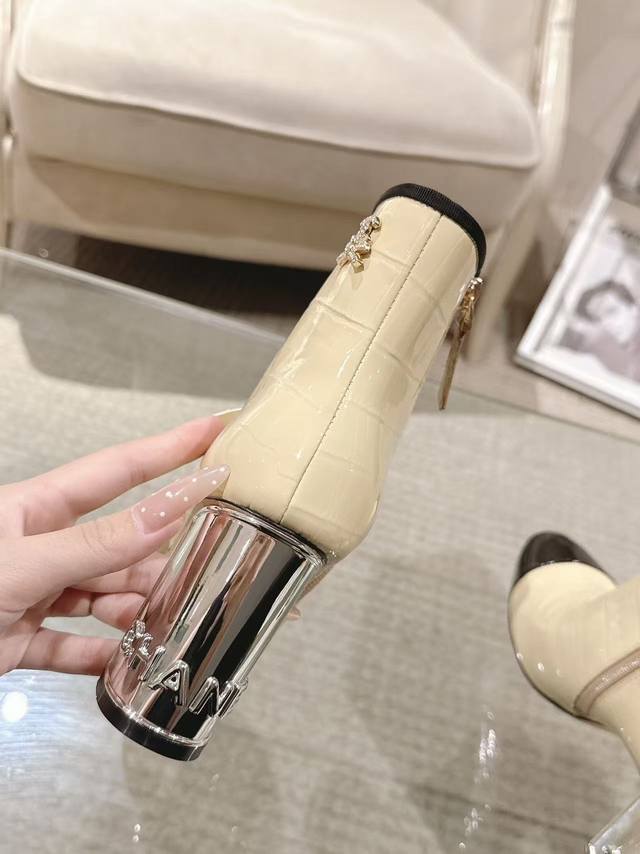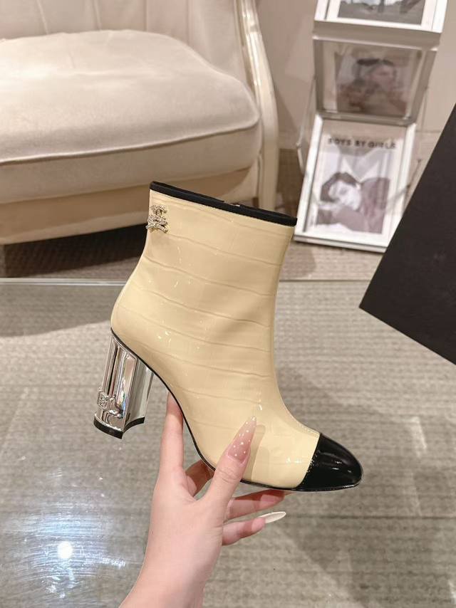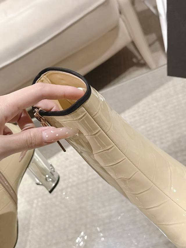 Exquisite electroplated letter heel boot opening with rhinestone tag 6-inch high boots