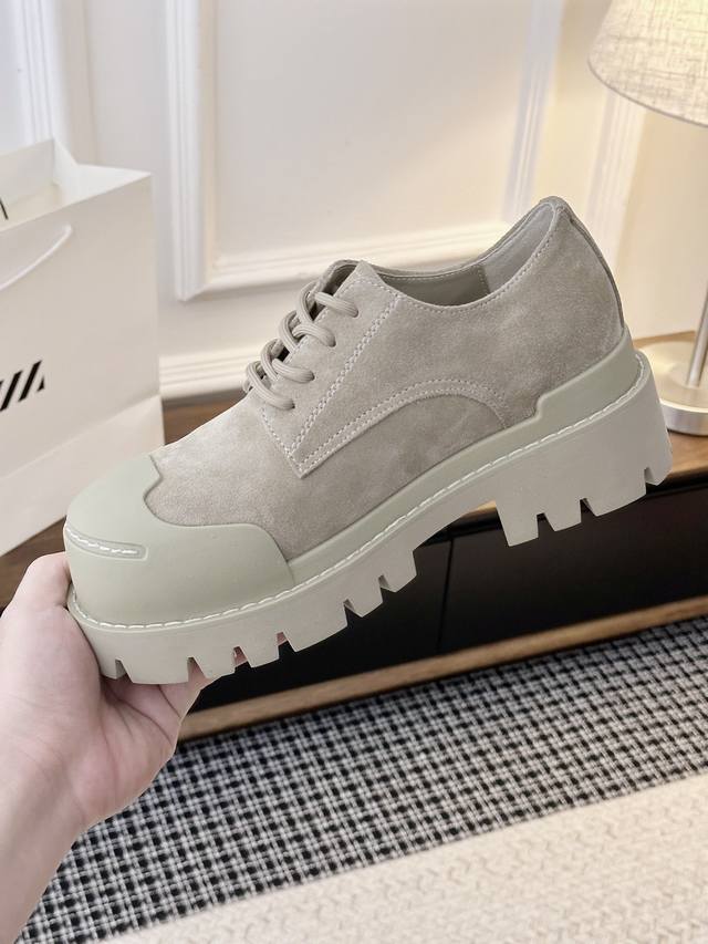 2026Ss Lace-up Derby Shoes Ddd A must-have footwear brand for fashionistas every year, their designs always encourage you to break through and innovate Ddd Whether for everyday casual wear or a functional mix-and-match, these sneakers offer a superior experience of both comfort and style Ddd Exclusive custom-molded streamlined ultra-lightweight platform sole, easily handling various outfits, the toe is elegant without being bulky, and they add height to make your legs look longer Ddd Material: Original suede calfskin matte cowhide Ddd Lining material: Cowhide Ddd Outsole material: 6cm height-increasing rubber combination outsole Ddd Available sizes: 35-40 Size 40 is custom-made and non-refundable DDD