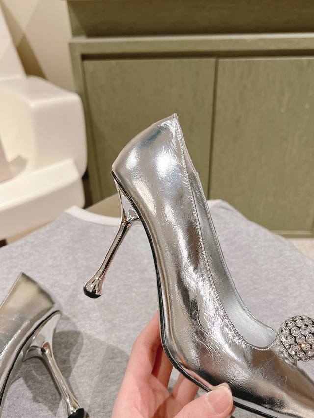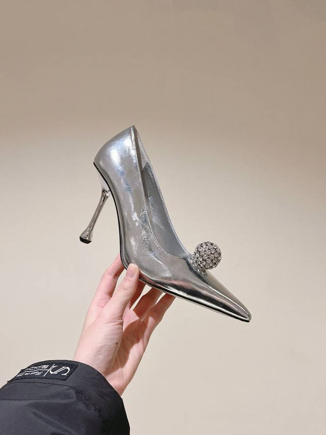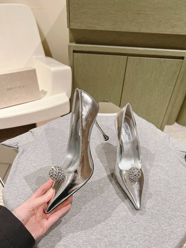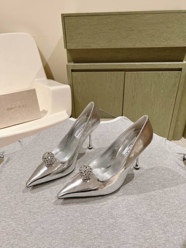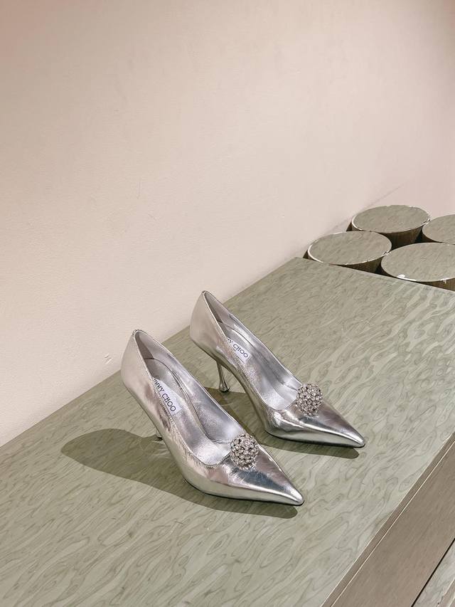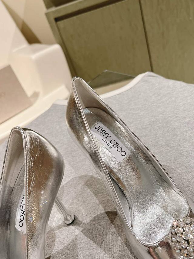 Early Spring Crystal Rhinestone Buckle Pointed Toe Jimmy Choo Lambskin Single Shoes New Arrival Superb! A stunning reunion with Jimmy Choo's Spring/Summer 2025 collection, an elegant encounter with a striking beauty. Recommended by international fashion bloggers for street style. Bold and unique design, perfect for street style.