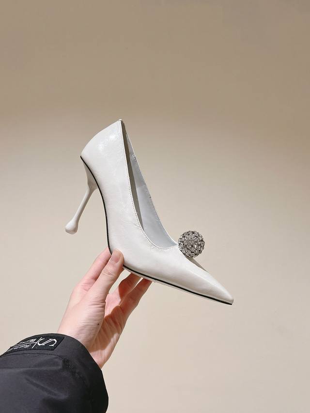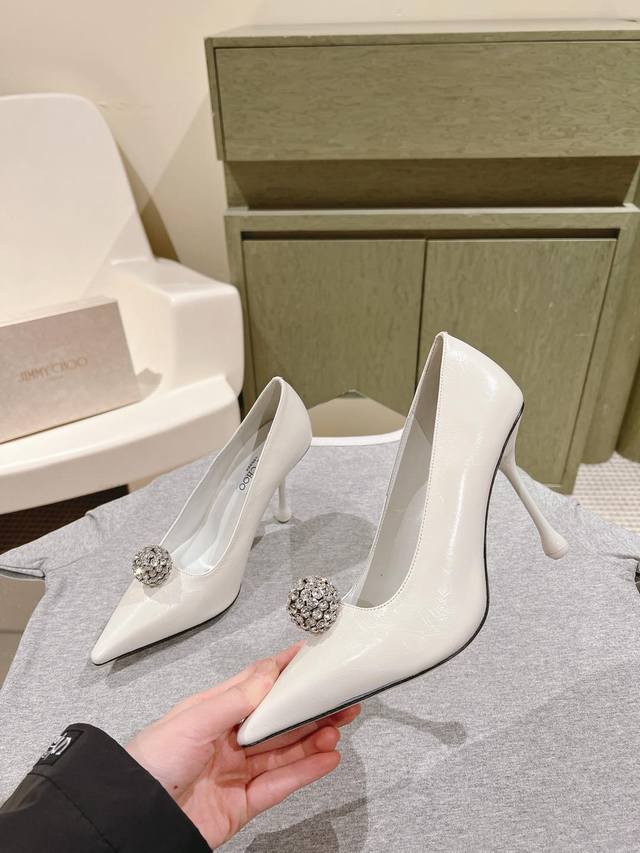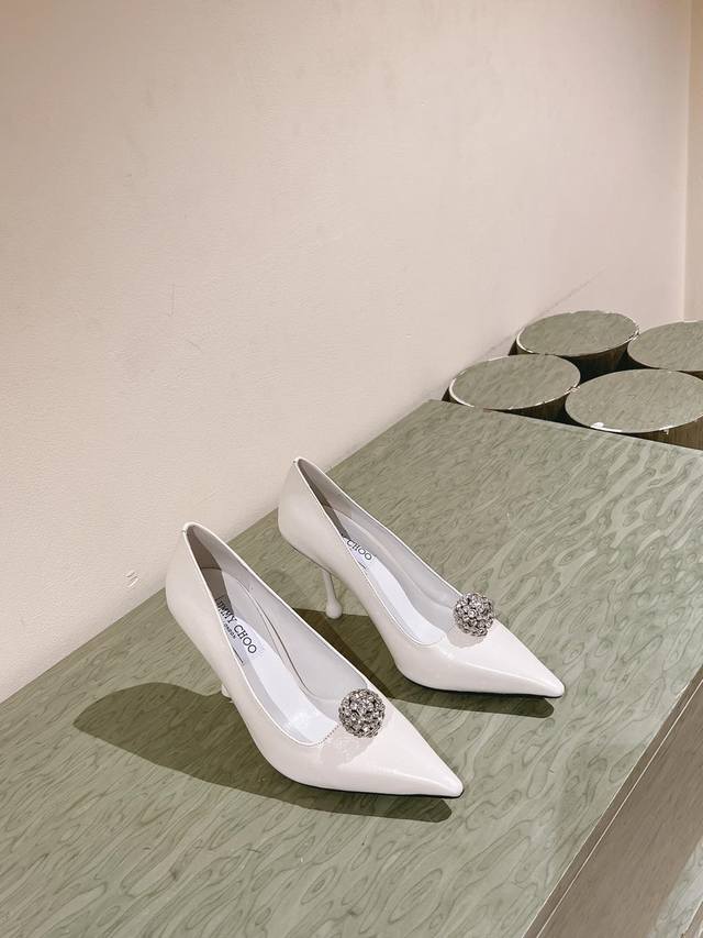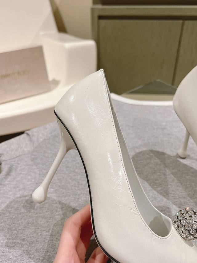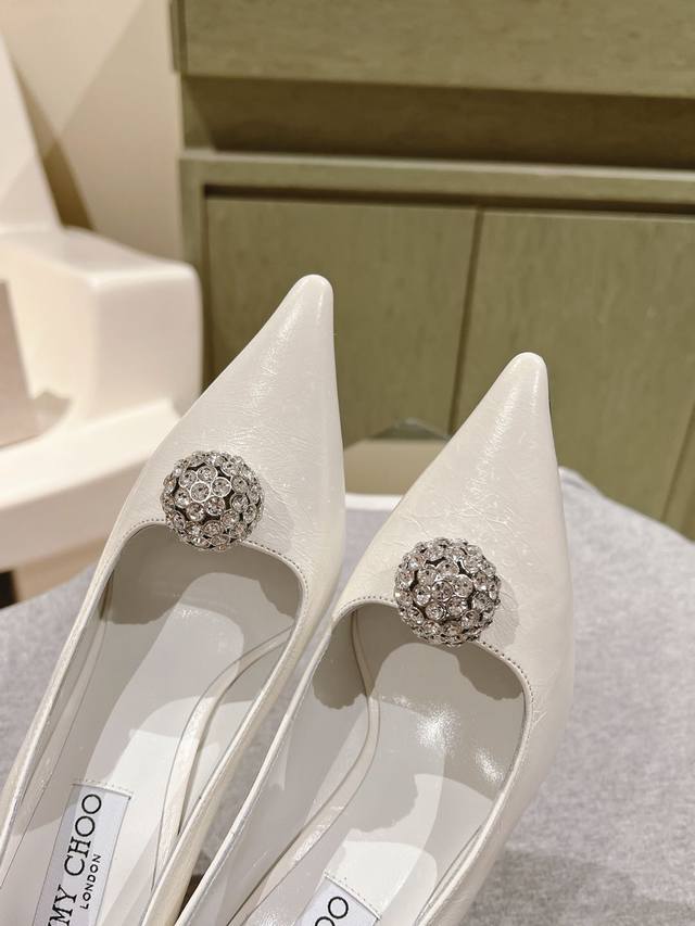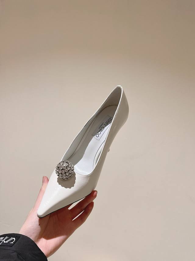 Early Spring Crystal Rhinestone Buckle Pointed Toe Jimmy Choo Lambskin Single Shoes New Arrival Superb! Jimmy Choo's 2025 Spring/Summer Collection Reunion: Stunning Elegance, A Clash of Beauty. Fashionable International Bloggers' Street Style Recommendation. Bold and Chic, Perfect Street Style.