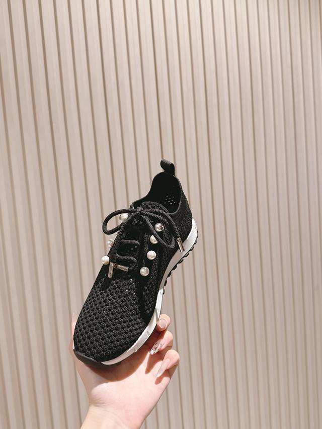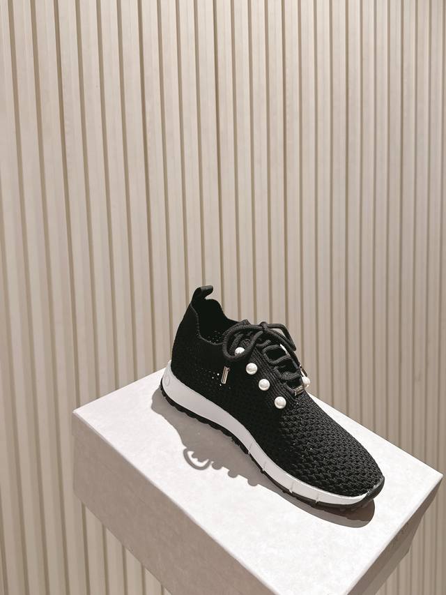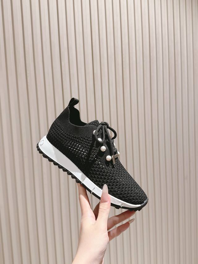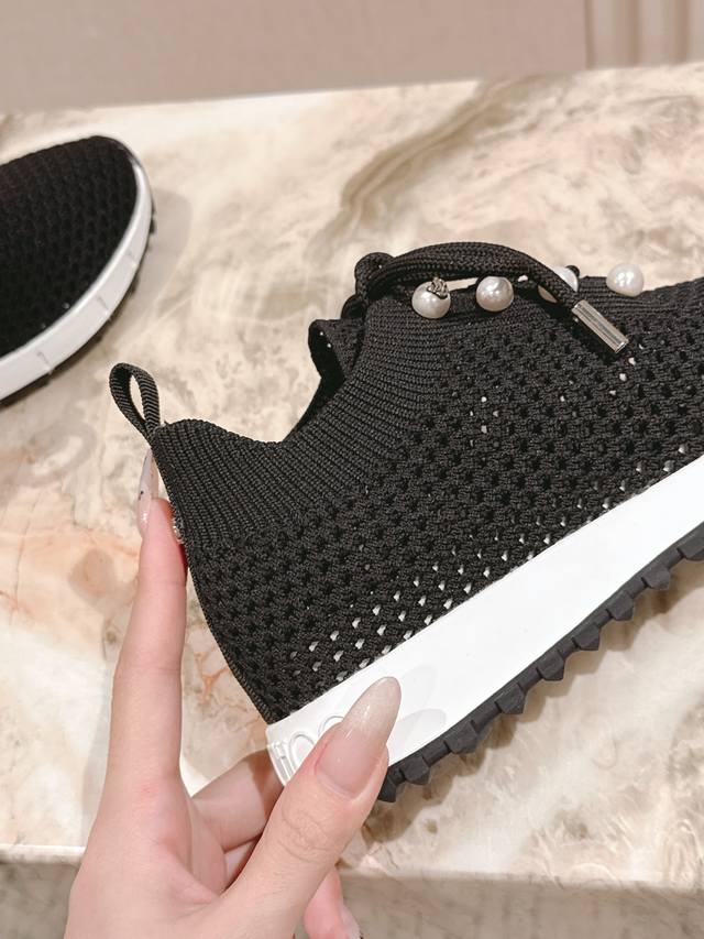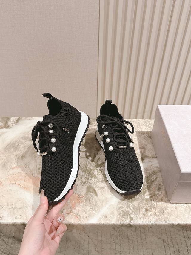 Jimmy Choo*'s latest stretch sock sneakers, a flagship collection! Superb shopping experience! Made from genuine leather with leopard print, paired with JC-inspired pearl embroidery and rhinestone detailing, this is a truly unique pairing! Super comfortable! Lined in premium sheepskin leather!