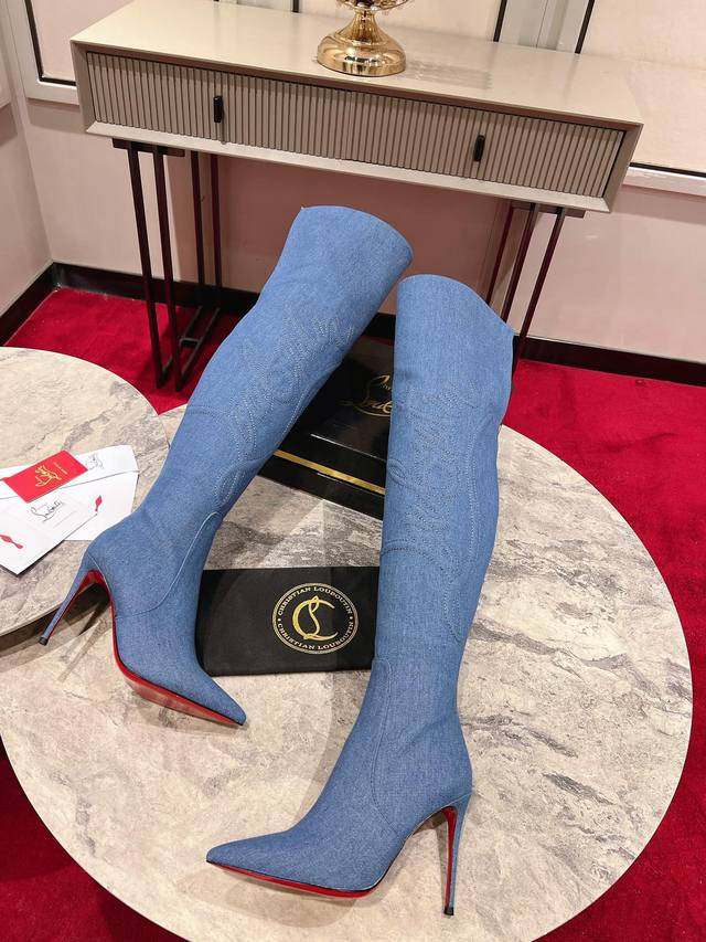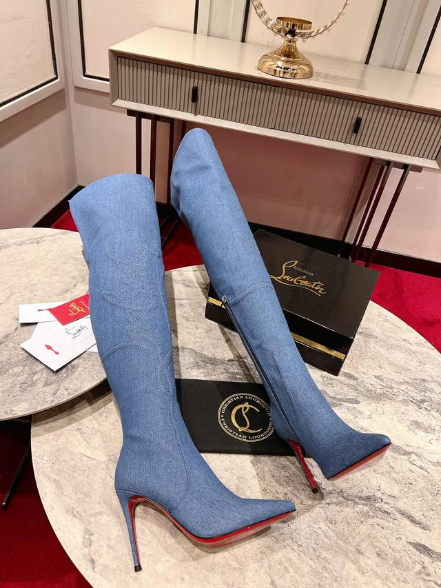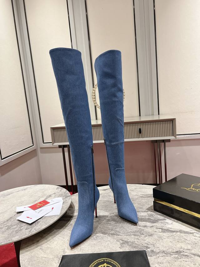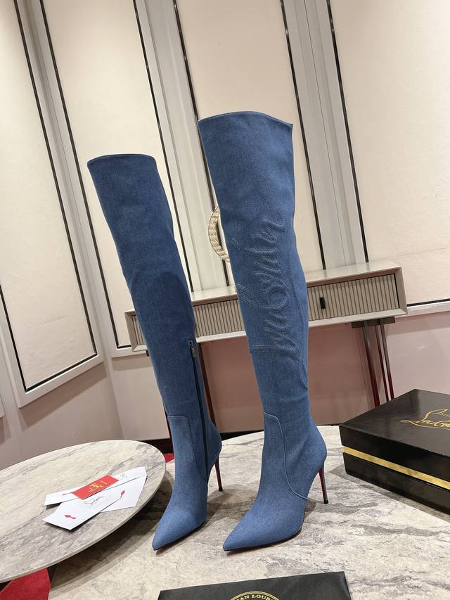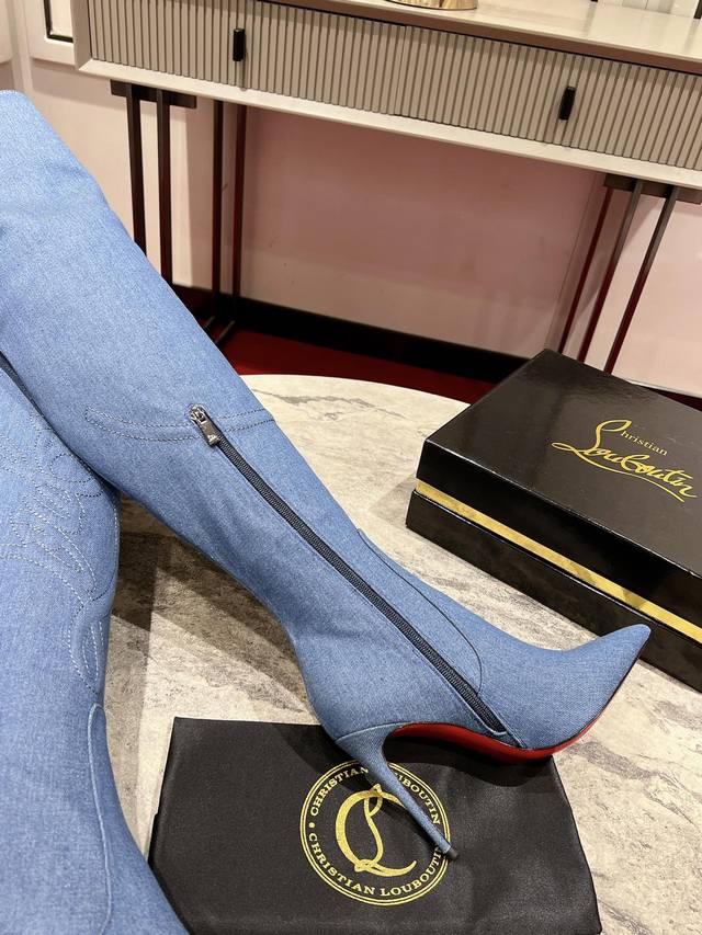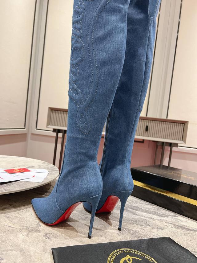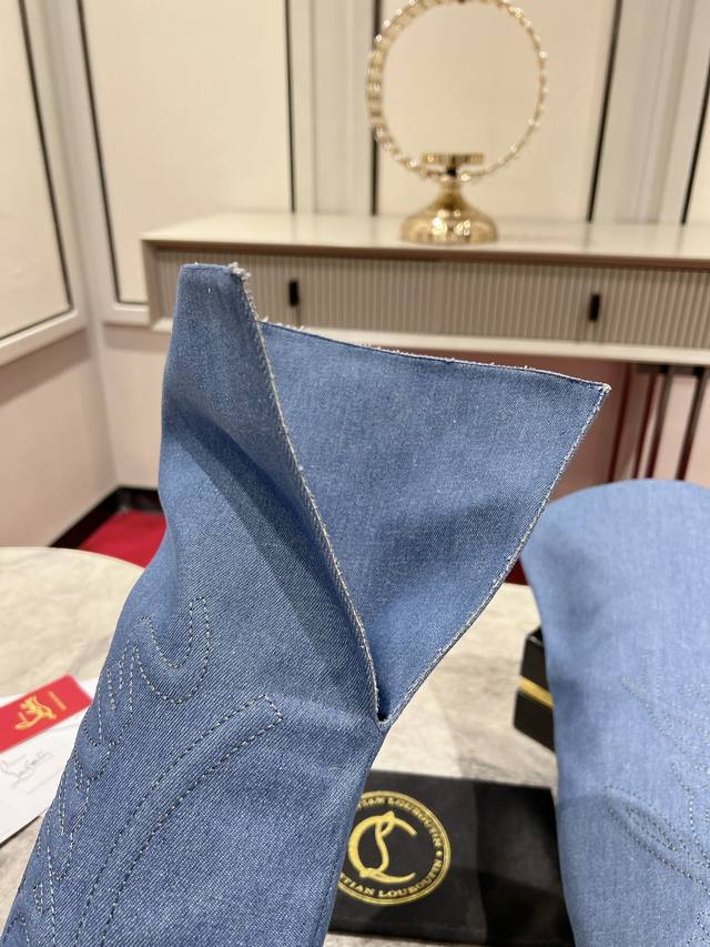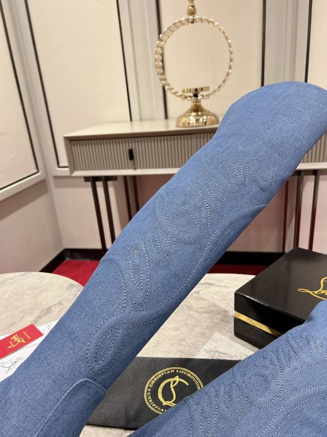 24Aw runway classic long boots, a celebrity-inspired style inspired by the Western wilderness. Handcrafted from imported calfskin and denim, the prominent texture design accentuates the shape of the lower leg. The 85mm heel and iconic Western cowboy style evoke the pattern of cowboy boots. The entire