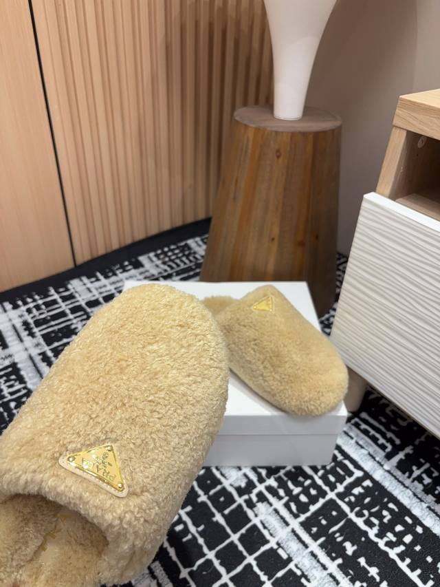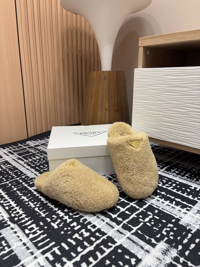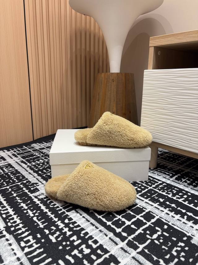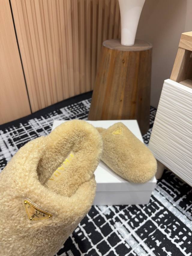 24Ss Autumn/Winter New Prada Triangle Logo Wool Plush Slip-on Muffins Ddd These simple wool-lined slip-on muffins are crafted from wool plush. The triangular logo is reinterpreted as a classic element! Ddd Upper: Wool Plush Ddd Lining: Wool Plush Ddd Sole: Gum rubber Ddd Sizes: 35-39 40, 41 (Custom sizes, no returns or exchanges) Ddd