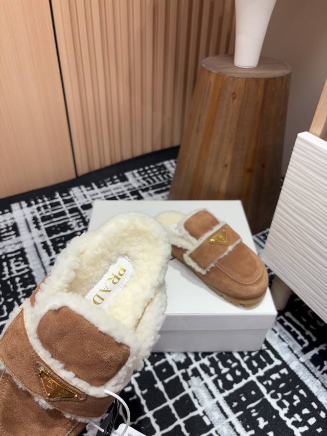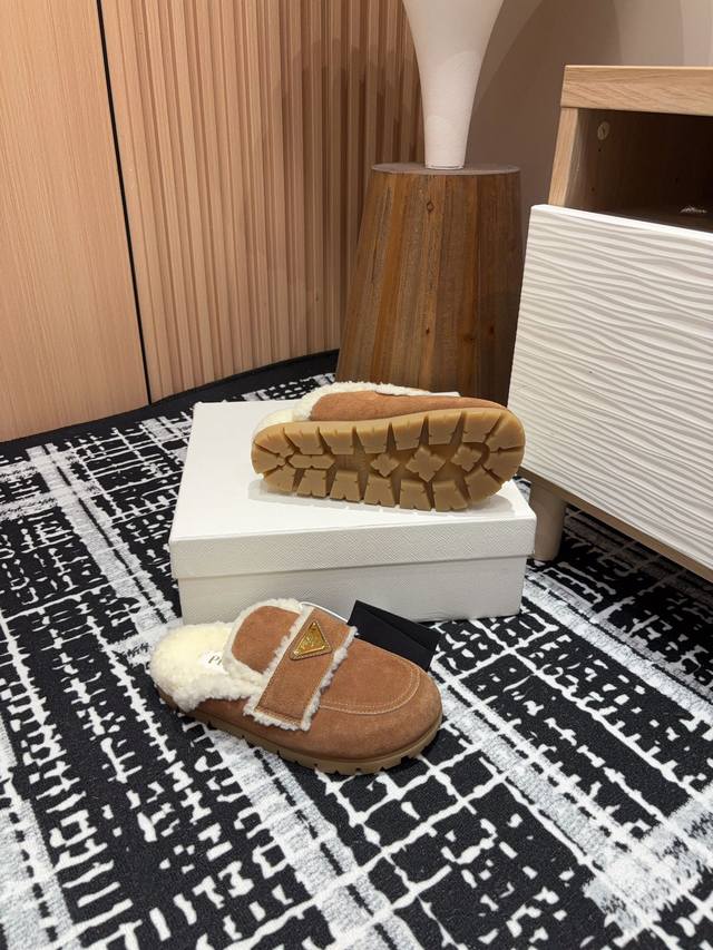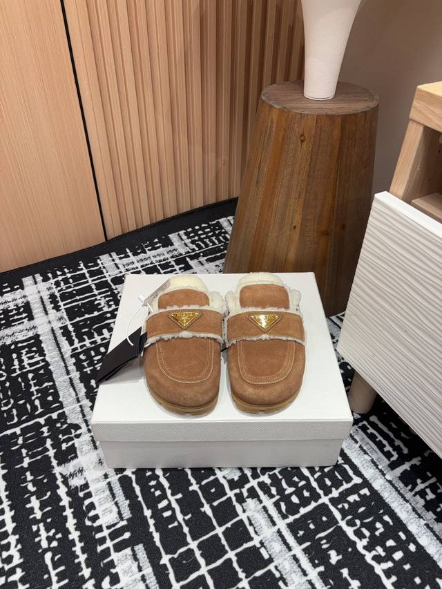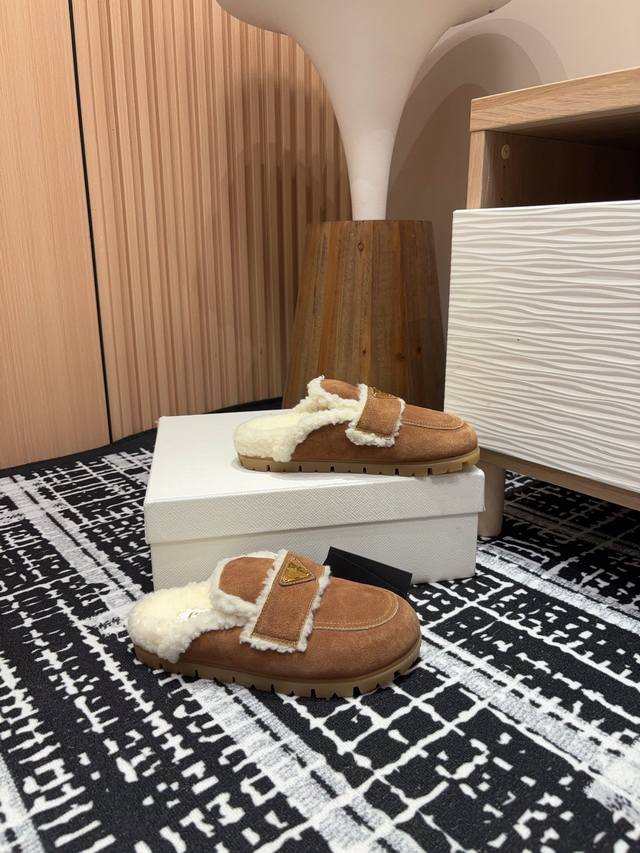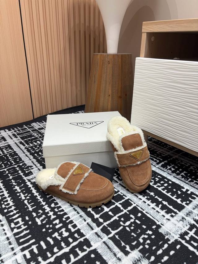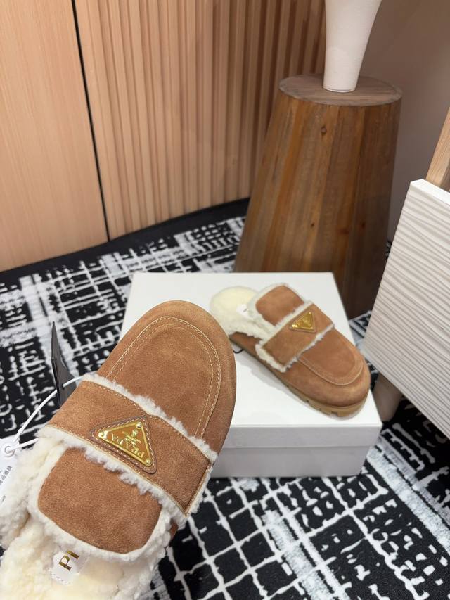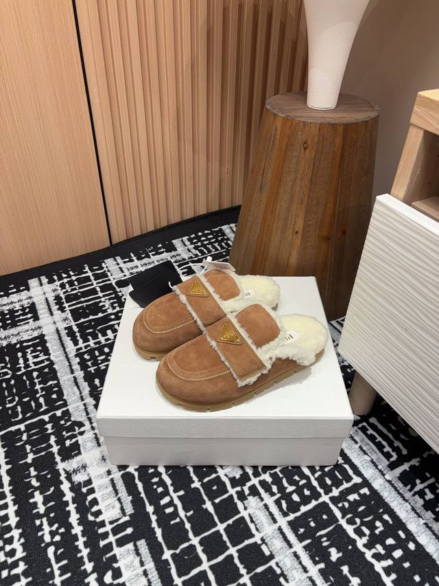 24Ss New Prad* Triangle Logo Closed-Toe Fleece Mules Ddd These mules are crafted from cowhide leather with a wool lining, presenting a modern and versatile silhouette. The upper is adorned with an enamel triangular metal logo, while the rubber-textured sole adds a casual and sporty touch to the overall design. Ddd Upper: Burnished cowhide Ddd Lining: Wool lining Ddd Sole: Rubber sole Ddd Sizes: 35-39 40, 41 Custom orders are non-refundable Ddd Ddd