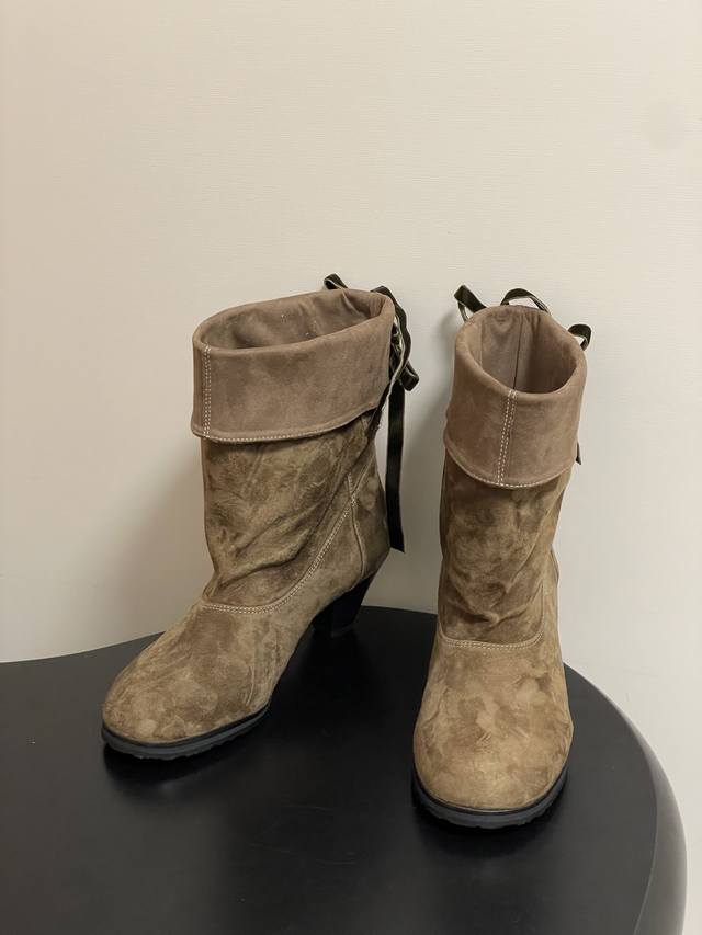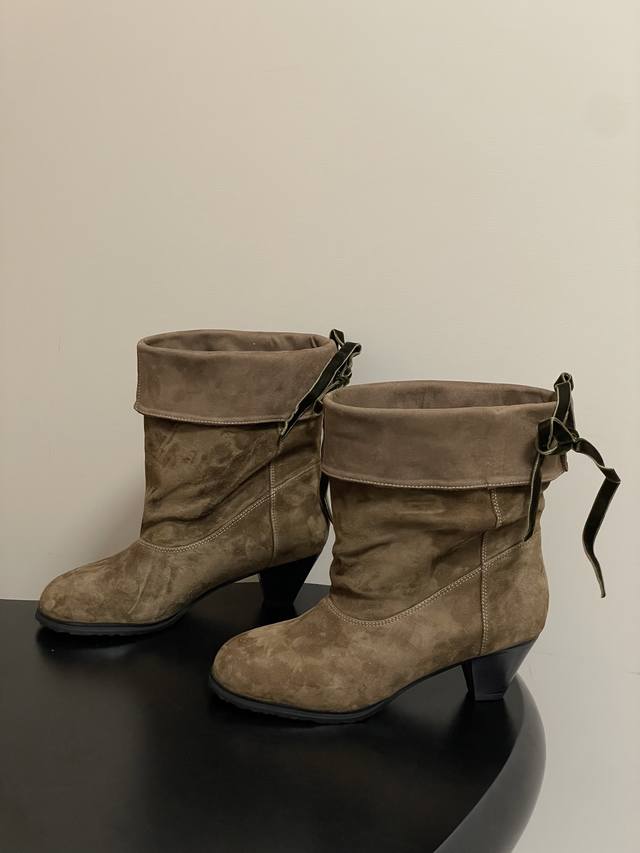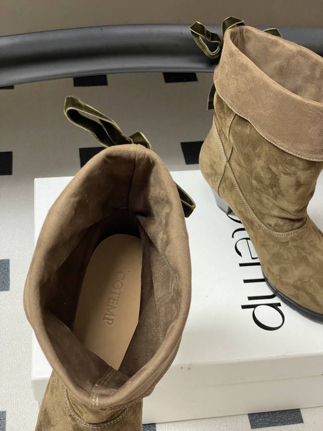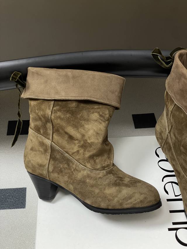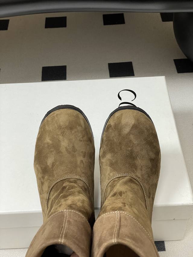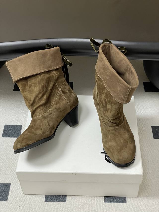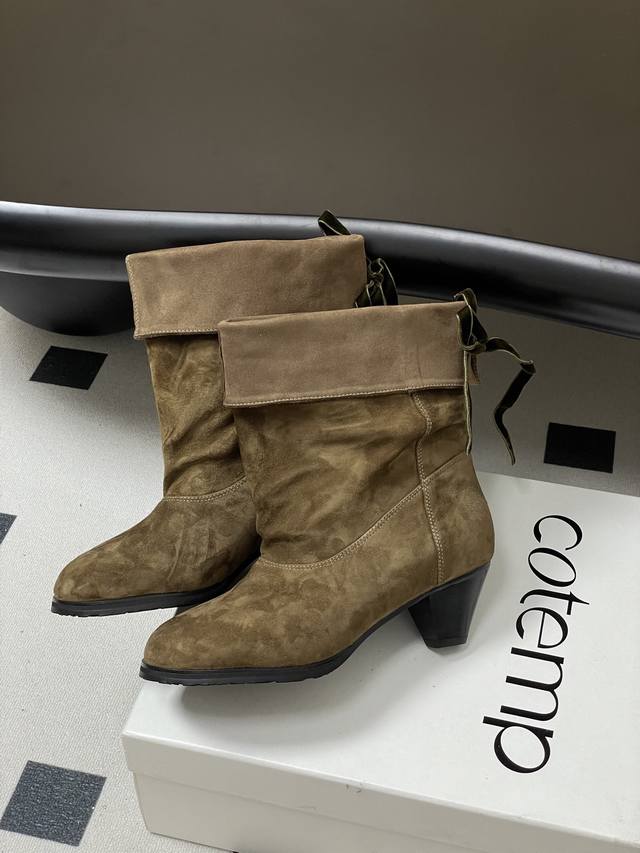 25Ss Autumn/Winter New Cotemp Round Toe Pleated Boots Commuter Ankle Boots High-Heeled Slouch Boots Retro Chunky Heel Wide-Cut Ankle Boots DDD Continuing the Cotemp design, the Regalo features a delicate, rounded toe, an upper covered in fine-textured cowhide, and a widened boot shaft. Soft and stackable, it exudes a relaxed vibe. The shoe body features simple and refined stitching, with double rows of fine stitching creating exquisite details. The rubber sole with a 5cm inward-curving chunky heel provides slip resistance and stability, presenting a neutral and clean modern style for autumn and winter. DDD The inner lining is made of selected suede, soft to the touch, revealing a delicate texture when folded up, creating a contrasting sheen between the suede and leather. A velvet lace-up detail at the back of the boot shaft allows for slight adjustment of the cuff size. DDD It perfectly captures a relaxed and fashionable feel, mastering the art of chic. The pleated boot shaft adds a casual touch, and the fold-over design is a clever detail. Instantly elevates your street style; it looks great with both pants and skirts! DDD Upper: Calfskin DDD Insole: Sheepskin DDD Outsole: Open-mold rubber outsole DDD Heel height: 5cm DDD Sizes: 35-39 Sizes 40 and 41 are custom-made and non-refundable DDD