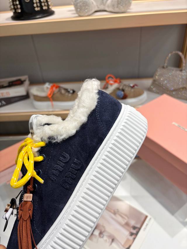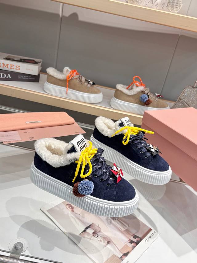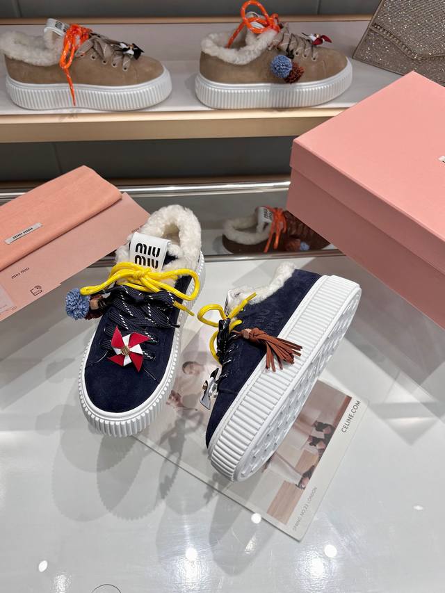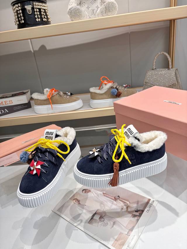 The popularity of biscuit shoes is only increasing, not only because of their high versatility but also because of their outstanding feel. The sole has layers of waves, just like a biscuit! The look is online and durable. Miu shoes have always been girly, and few girls can resist Miu's sweetness! This time it is Miu's biscuit shoe series 4. Although it is a simple design, the 1Ogo tongue is also very distinctive! It can be easily matched with long skirts, short skirts, jeans, casual wear, etc. to create a unique style. The age-reducing effect is very obvious