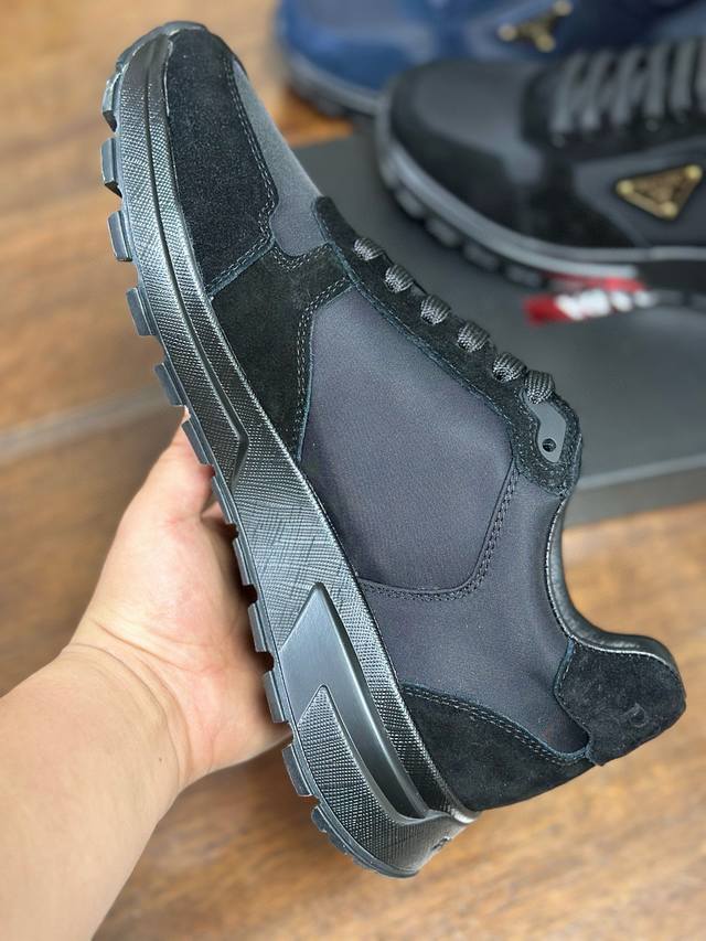 This sneaker features a dynamic silhouette with a mix of Re-Nylon and suede leather uppers, paired with a comfortable sole. It reinterprets the classic Prax style, adorned with the Pra** logo.