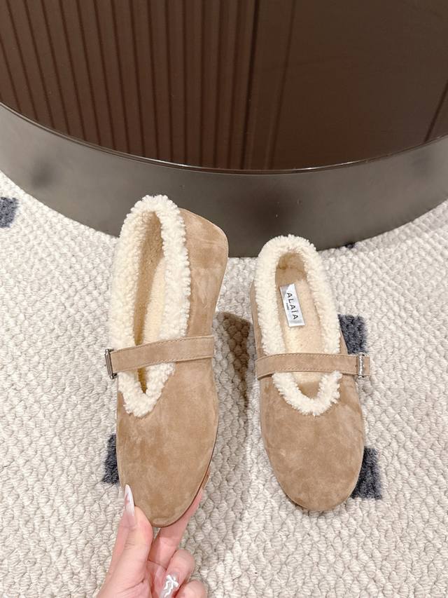 35-40 41 Custom Made DDD 2025 Alaia's Hottest Mary Jane Shoes are Here! Stay warm and beautiful in Mary Janes this winter! DDD Who's a Mary Jane fanatic? You'll be unable to resist these! The soft wool lining will keep your feet warm, while the suede texture is luxurious and gentle. The metal buckle design adds a retro touch. Available in khaki, black, and brown, they look amazing with coats or sweaters. Experience the freedom of Mary Janes this winter