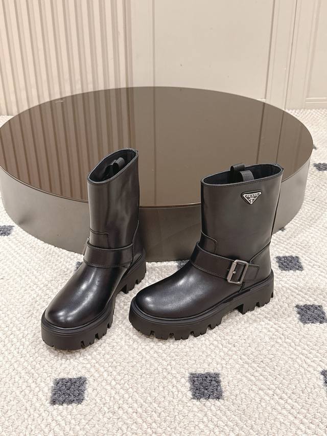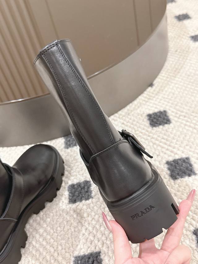 35-40 41 Custom-made DDD Prada 2025 New Platform 5cm Boots are here! Who can resist?! DDD The classic Prada triangle logo is understated yet luxurious, showcasing the brand's unique style. The platform design adds height, subtly lengthening the leg line, instantly giving you a commanding presence. Whether it's high-quality leather or soft, skin-friendly suede, each pair of boots perfectly demonstrates Prada's exquisite craftsmanship. DDD The cool black version pairs perfectly with jeans and a biker jacket for a street style icon; the gentle khaki and sophisticated brown versions complement wool coats and long skirts, exuding elegance. The metal buckle design on the boots adds a touch of ruggedness and casualness, a detail that will satisfy even the most discerning eye. This fall and winter, with Prada platform boots, your style will be off the charts, making you the most fashionable person on the street! #prada #2025newboots #platformboots #fashion