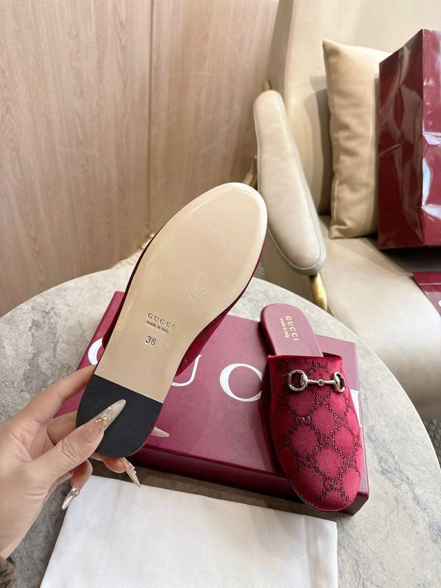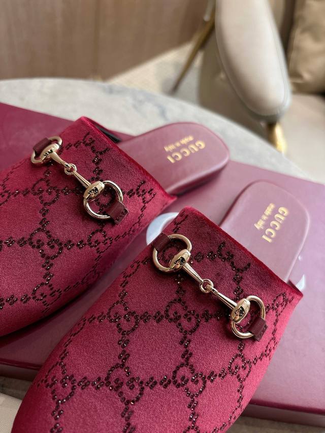3669-3A Black Diamond Ddd Horsebit Accessories: A tribute to the brand's equestrian heritage. This women's mule features exquisite details in a light gold tone, crafted from soft velvet and adorned with Gg crystal patterns for a dazzling touch. Ddd Black Gg Crystal Velvet Ddd Sizes: 35-42, 40-42 (Custom Made) Ddd Sole Material: Imported Italian Genuine Leather Ddd Packaging: Brand New Red Box DDD DDD
