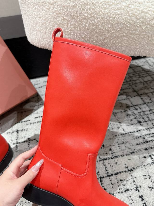 Loro piana LS new autumn and winter Lupo straight boots, a slip-on mid-calf boot