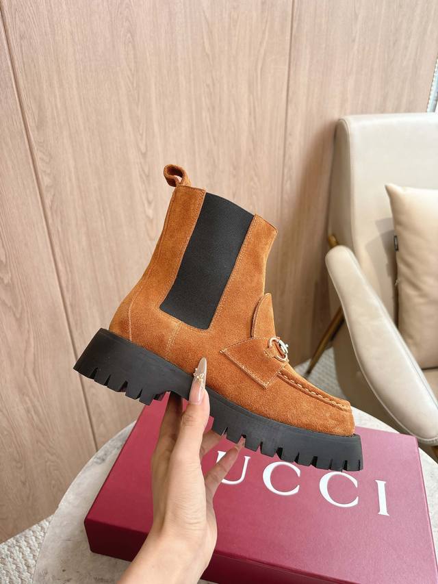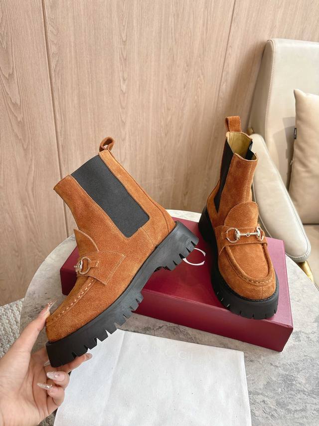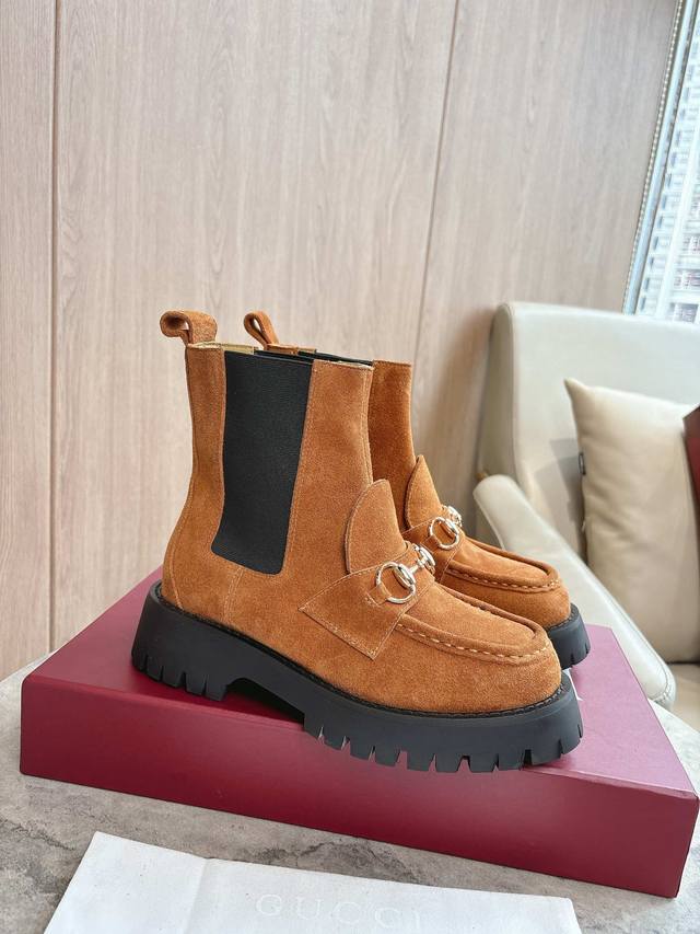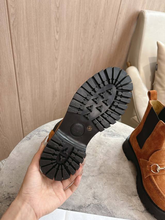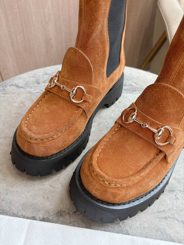 9562-8 Brown ?35-41 Exquisite details infuse these loafers with elegance. Crafted from smooth suede and paired with a grooved rubber sole, the design is further enhanced. The light gold horsebit adds a touch of brand identity to this classic yet modern design. Brown suede, light gold hardware, horsebit, grooved rubber sole, flat sole, height: 3cm