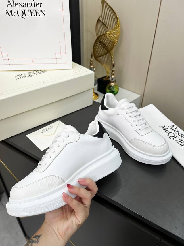 A Alexander McQueen Couple Shoes Size: Women's 35-40, Men's 39-44, Men's 45. Custom-made Alexander McQueen leather lace-up round toe low-top casual shoes for couples! Latest Milan Fashion Week runway style from 2025, unique and stylish design, super fashionable on the feet, the round toe design allows for complete toe freedom. Extremely high-quality, purchased multiple original pairs, disassembled and replicated. Super popular, boutique quality! Material: Cowhide Leather; Lining: Breathable Mesh; Insole: Active Sheepskin Latex Insole; Outsole: Original Mold Vacuum-Pulsed Outsole.
