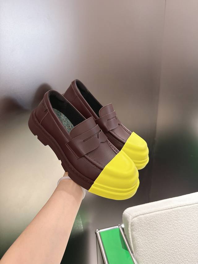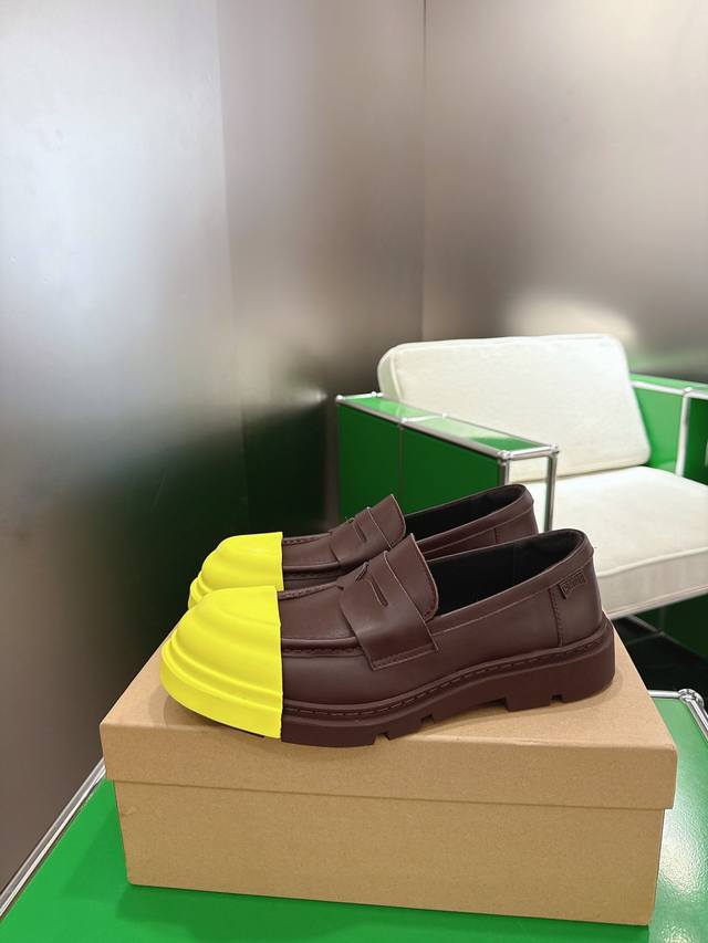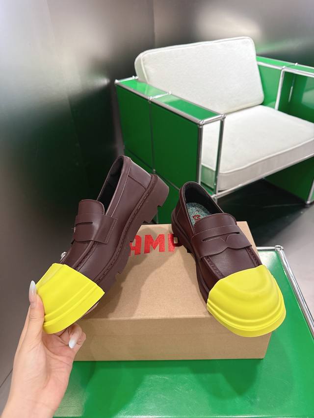 A pair of shoe covers is available for an additional 30 RMB. Camper, a Spanish niche streetwear brand, 25Ss Spring/Summer new round-toe loafers. Detachable rubber toe cap, contrasting color design, super popular derby shoes. Camper derby shoes, detachable toe caps for versatile styling, very eye-catching. Every colorway is beautiful, all details are perfect, super comfortable to wear. Material: Imported calfskin. Lining: Sheepskin lining. Insole: Original colored high-elastic latex. Outsole: Original molded ultra-soft sole. Sizes: Women's 35-40, Men's 40-45, Women's 40, Men's 45 (custom made).