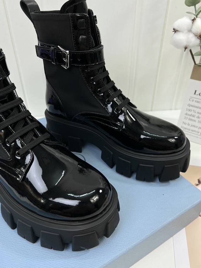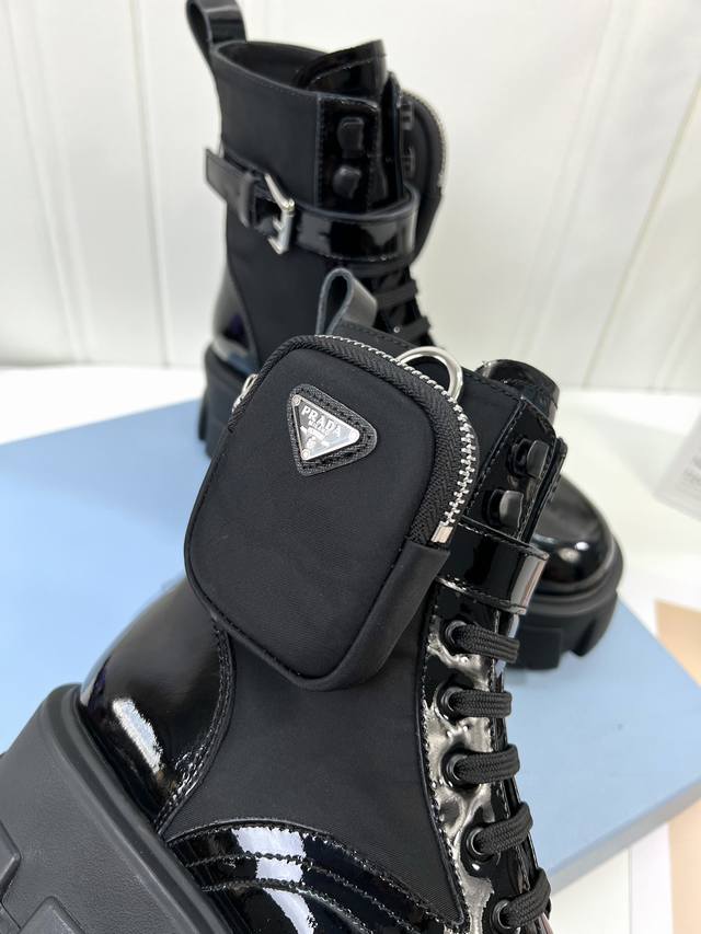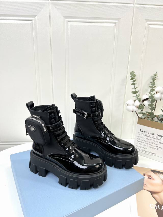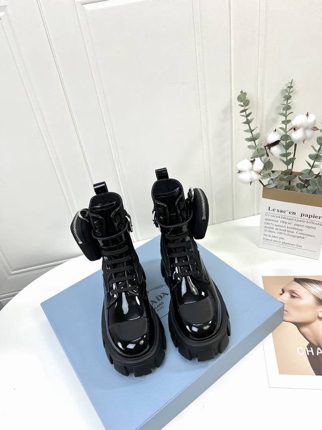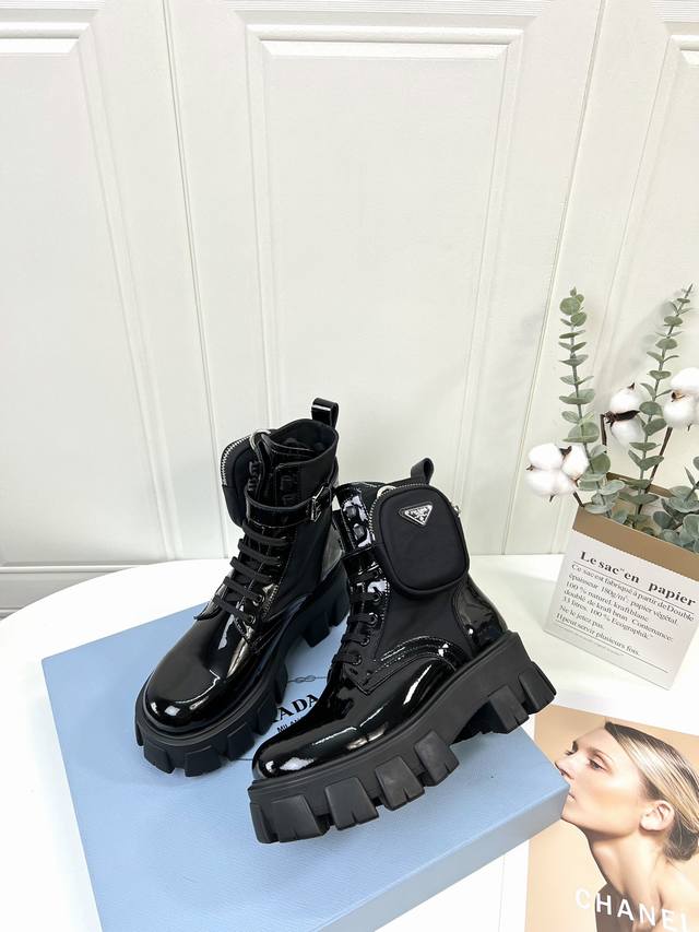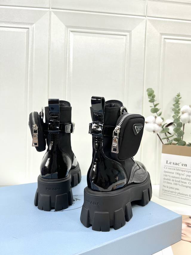 A prad 22Ss early spring new arrival! Classic boot silhouette with a British colorblock design, timeless and eye-catching! Original molded last, 1:1 ratio, imported high-end knitting needles for a refined finish! Custom A-grade outsole, luxurious packaging! Unmatched quality, women's sizes 35-41. 40 and 41 are custom-made and non-refundable.