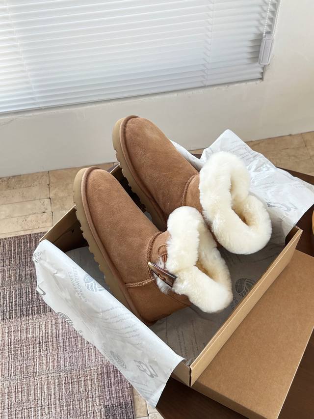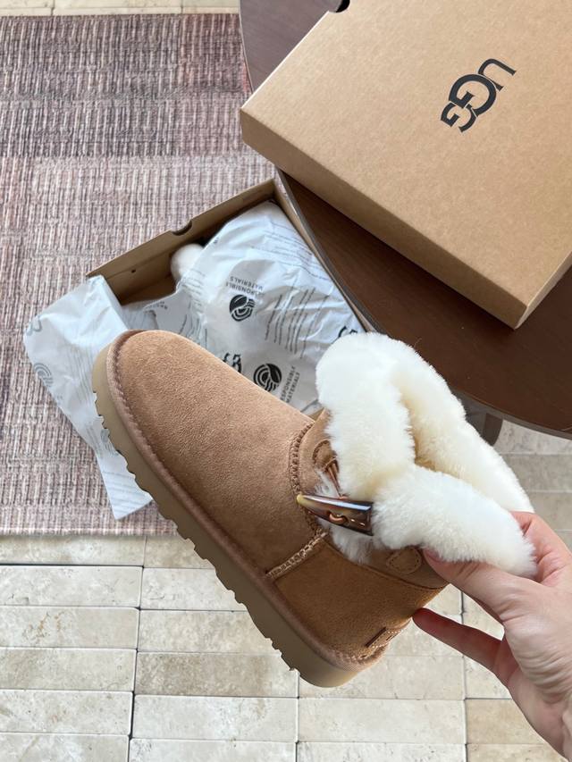 A thin-soled, horn-shaped shoe with a great cut. Made with pure wool suede and horn buckles, it looks amazing on long-legged girls. The pure wool lining keeps your feet warm in winter. A preppy style that's youthful and warm. Color: Chestnut. Size: 35-40.