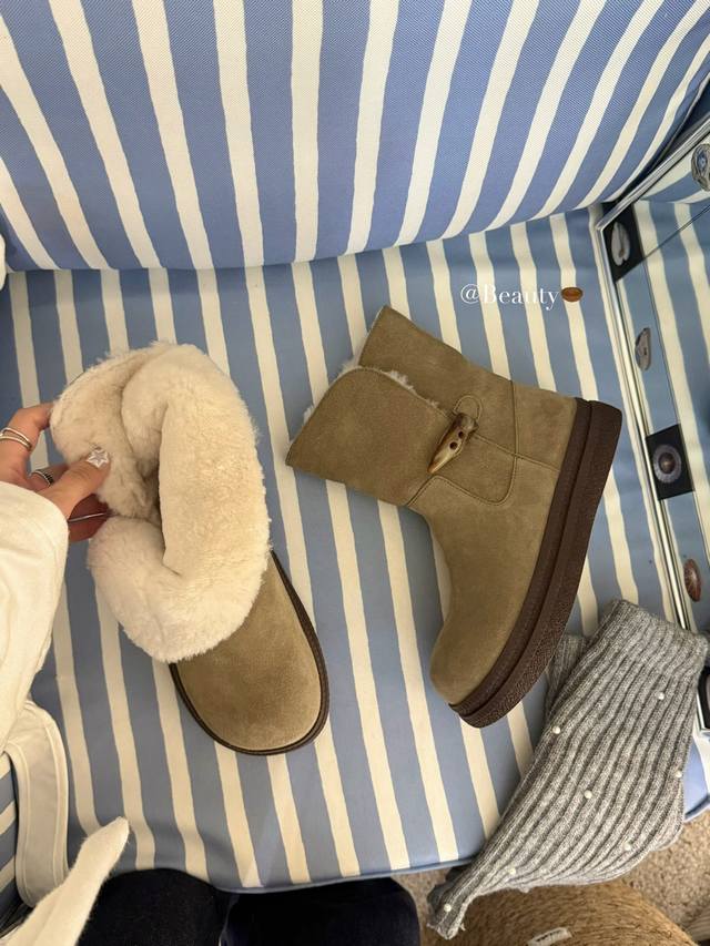A Winter Essential | These Toggle-Buck Snow Boots Are So Hot! DDD Anyone understands?! I can't live without these warm snow boots in winter, but ordinary styles lack character. Until I found these toggle-buckle thick-soled snow boots, they've welded "warmth + style" right to my feet! DDD Three colors, each with its own charm: DDD The suede material is very textured, and the lining is full of wool, making you feel like you're sinking into a cloud. They can even withstand the harsh winters of Northeast China! The thick sole also subtly adds height, a clever trick that makes your legs look slimmer
