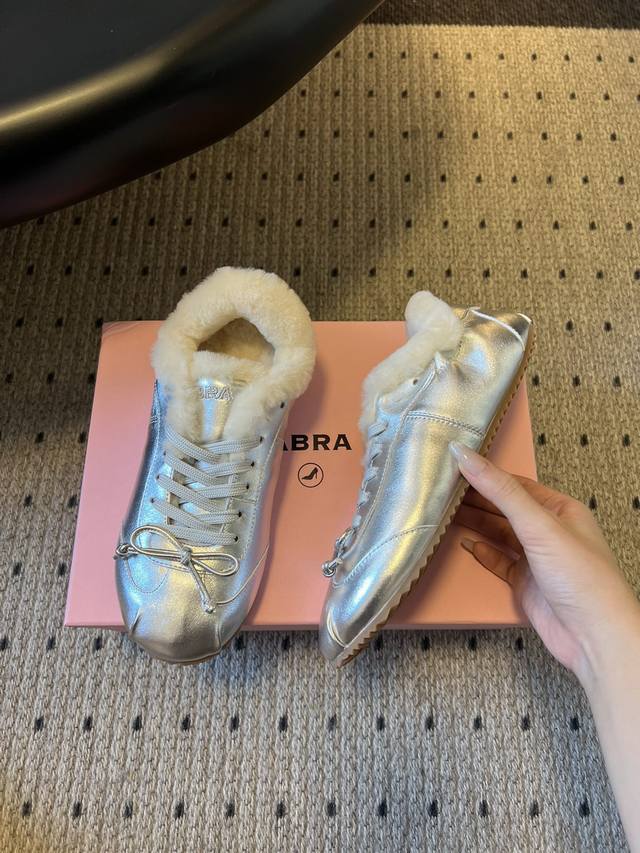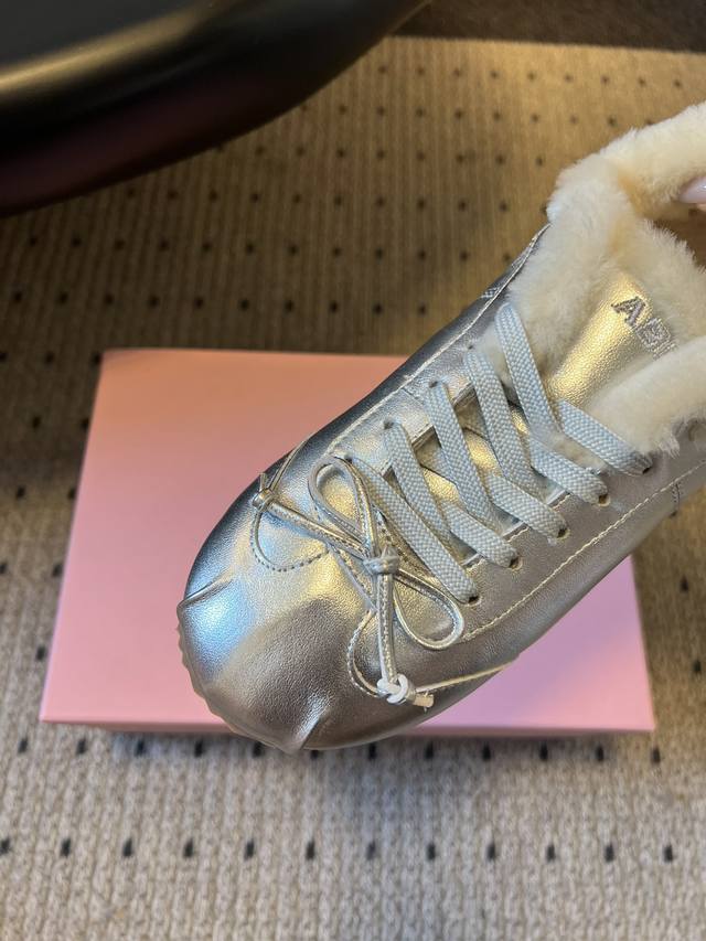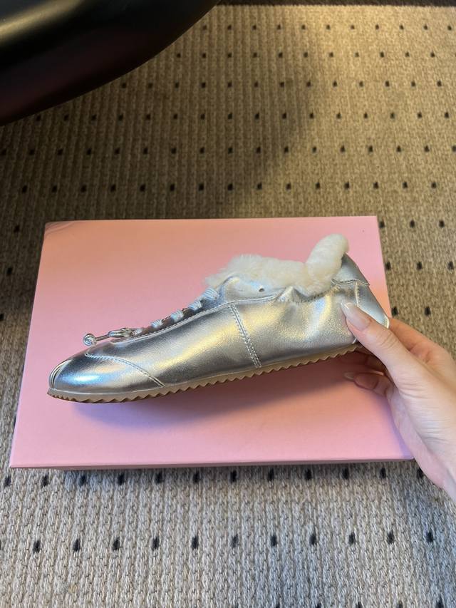 Abr* 25Ss Retro Fleece-Lined Round Toe Bow Flat Fleece-Lined German Training Shoes DDD The interior is covered with thick fleece in a 360