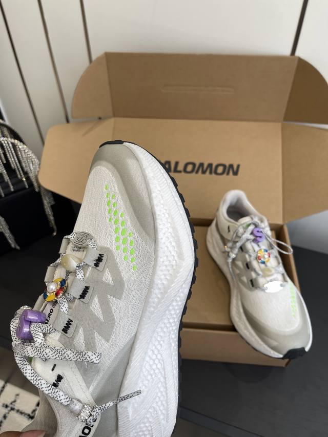Accessories 30 Salomon Xt Whisper, a collaboration with the Salomon Mm6, is a premium outdoor casual sneaker. This reimagined version focuses on its aerodynamic design, with signature white and cream accents for an urban feel. Another pair, crafted in pure black, highlights the rich, textured details. This iconic sneaker is refined into a new urban classic, bringing a tranquil touch to Salomon. Fabric: Original imported cowhide leather + breathable mesh. Lining: Original imported breathable mesh lining. Sole: Original molded, non-slip rubber outsole. Sole thickness: 4cm. Sizes: 35-45 (Women's 40, Men's 45, custom-made).
